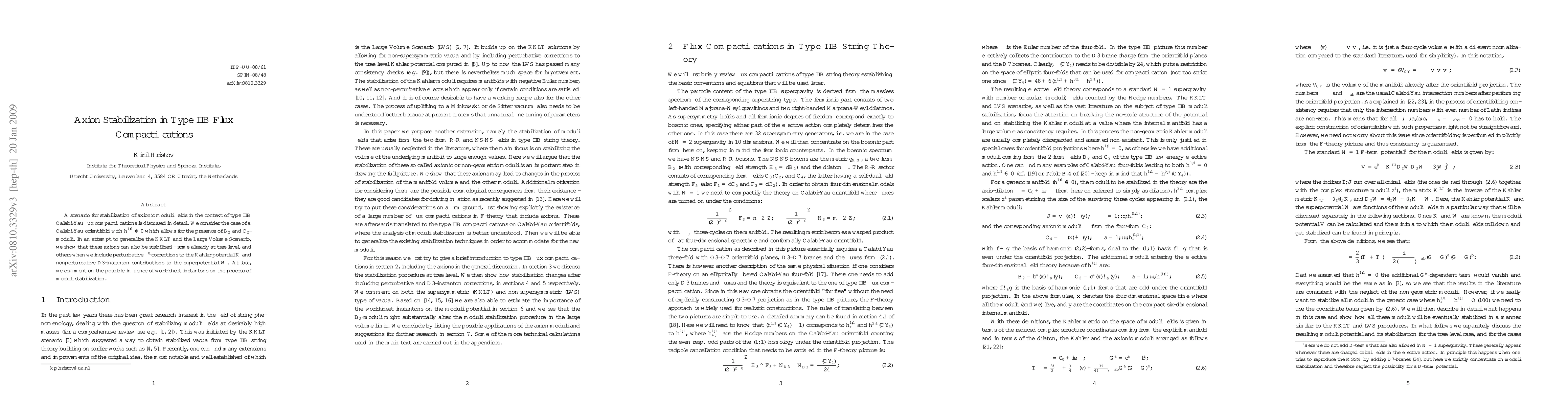 This paper explores the stabilization of axionic moduli fields in type IIB string theory on Calabi-Yau orientifolds, extending the KKLT and Large Volume Scenarios to include B_2 and C_2 moduli. Stabilization occurs at tree level and through perturbative corrections and D3-instanton contributions.
