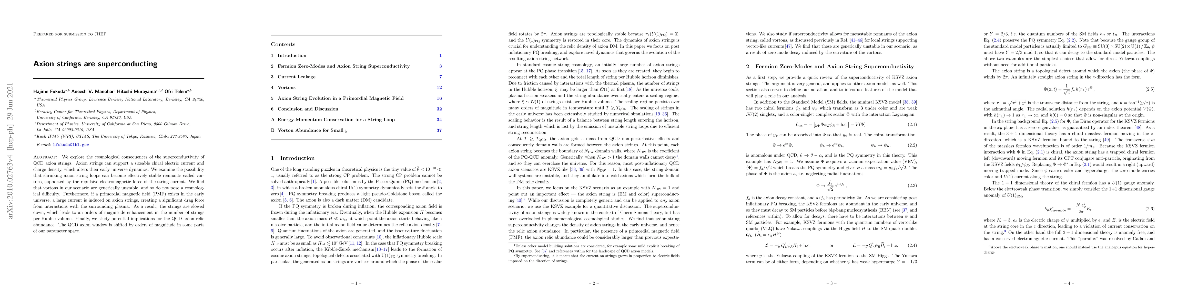 We explore the cosmological consequences of the superconductivity of QCD axion strings. Axion strings can support a sizeable chiral electric current and charge, which alters their early universe dynamics. Shrinking axion string loops can become effectively stable remnants called vortons, supported by the electromagnetic force of the string current. Generically, vortons produced by axion strings overclose the universe, unless there are efficient current leakage processes. Furthermore, if a primordial magnetic field (PMF) exists in the early universe, a large current is induced on axion strings, creating a significant drag force from interactions with the surrounding plasma. As a result, the strings are slowed down, which leads to an orders of magnitude enhancement in the number of strings per Hubble volume. Finally, we study the implications for the QCD axion relic abundance. The QCD axion window is shifted by orders of magnitude in some parts of our parameter space.