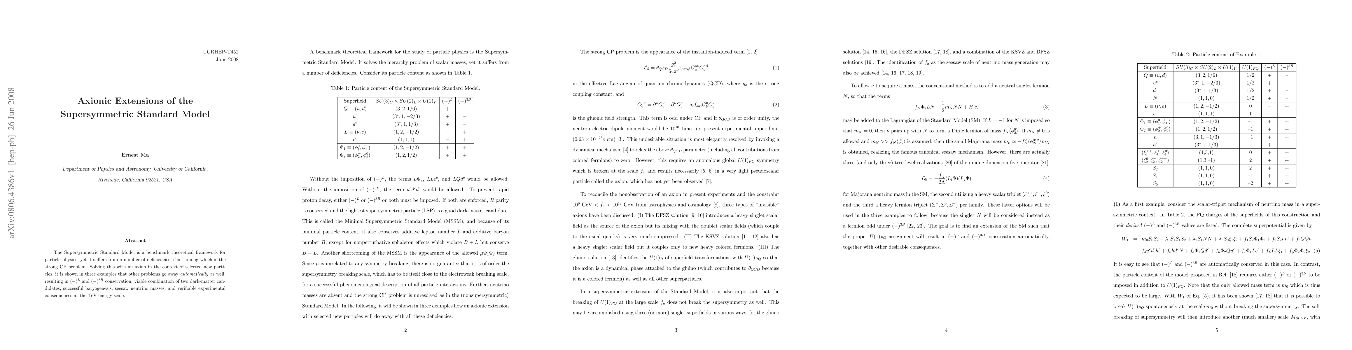 The Supersymmetric Standard Model is a benchmark theoretical framework for particle physics, yet it suffers from a number of deficiencies, chief among which is the strong CP problem. Solving this with an axion in the context of selected new particles, it is shown in three examples that other problems go away automatically as well, resulting in (-)^L and (-)^{3B} conservation, viable combination of two dark-matter candidates, successful baryogenesis, seesaw neutrino masses, and verifiable experimental consequences at the TeV energy scale.