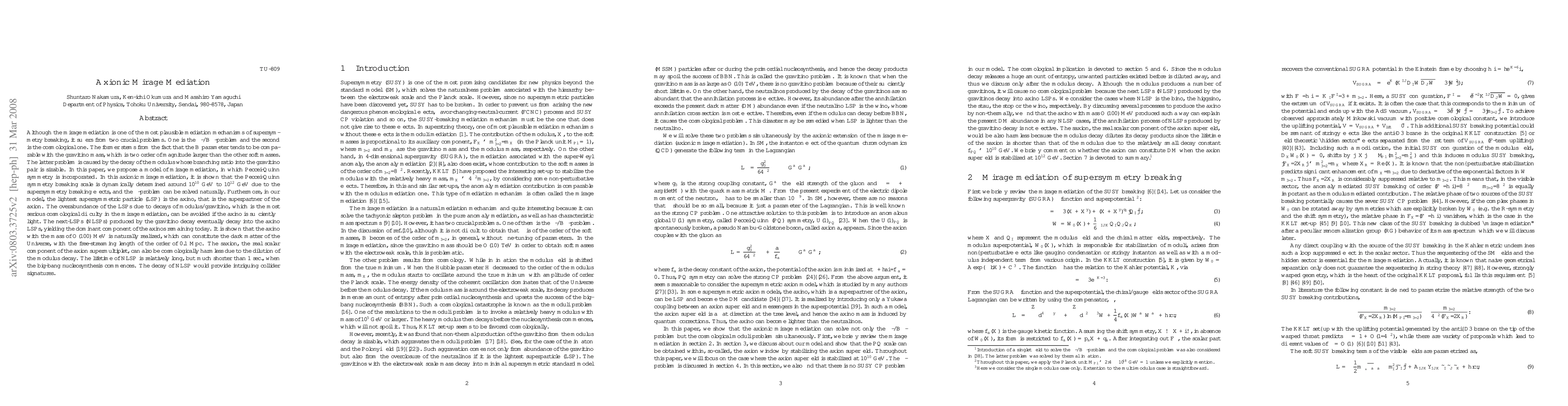 Although the mirage mediation is one of the most plausible mediation mechanisms of supersymmetry breaking, it suffers from two crucial problems. One is the \mu-/B \mu-problem and the second is the cosmological one. The former stems from the fact that the B parameter tends to be comparable with the gravitino mass, which is two order of magnitude larger than the other soft masses. The latter problem is caused by the decay of the modulus whose branching ratio into the gravitino pair is sizable. In this paper, we propose a model of mirage mediation, in which Peccei-Quinn symmetry is incorporated. In this axionic mirage mediation, it is shown that the PQ symmetry breaking scale is dynamically determined around 10^{10-12} GeV due to the supersymmetry breaking effects, and the \mu-problem can be solved naturally. Furthermore, in our model, the lightest supersymmetric particle (LSP) is the axino, that is the superpartner of the axion. The overabundance of the LSPs due to decays of modulus/gravitino, which is the most serious cosmological difficulty in the mirage mediation, can be avoided if the axino is sufficiently light. The next-LSPs (NLSPs) produced by the gravitino decay eventually decay into the axino LSPs, yielding the dominant component of the axinos remaining today. It is shown that the axino with the mass of O(100) MeV is naturally realized, which can constitute the dark matter of the Universe, with the free-streaming length of the order of 0.1 Mpc. The saxion, the real scalar component of the axion supermultiplet, can also be cosmologically harmless due to the dilution of the modulus decay. The lifetime of NLSP is relatively long, but much shorter than 1 sec., when the big-bang nucleosynthesis commences. The decay of NLSP would provide intriguing collider signatures.