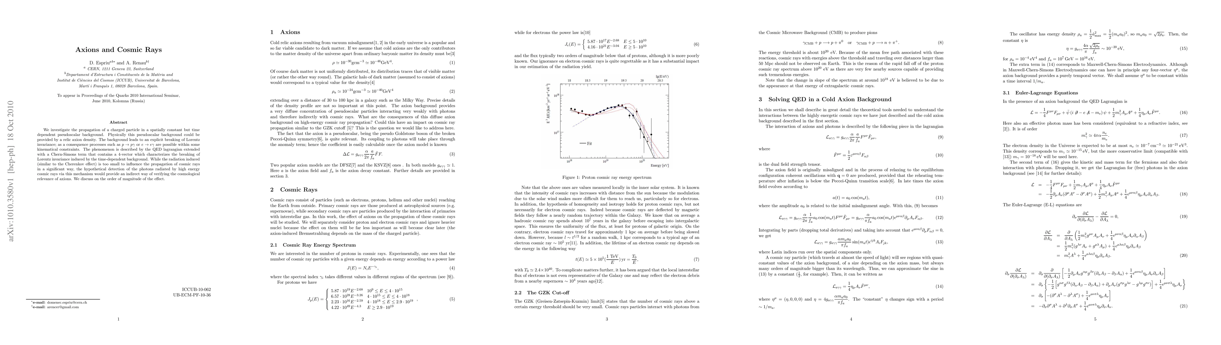 Researchers investigate how a relic axion density affects cosmic rays, finding that it could lead to the emission of photons via a Cherenkov-like effect, potentially verifying the cosmological relevance of axions.