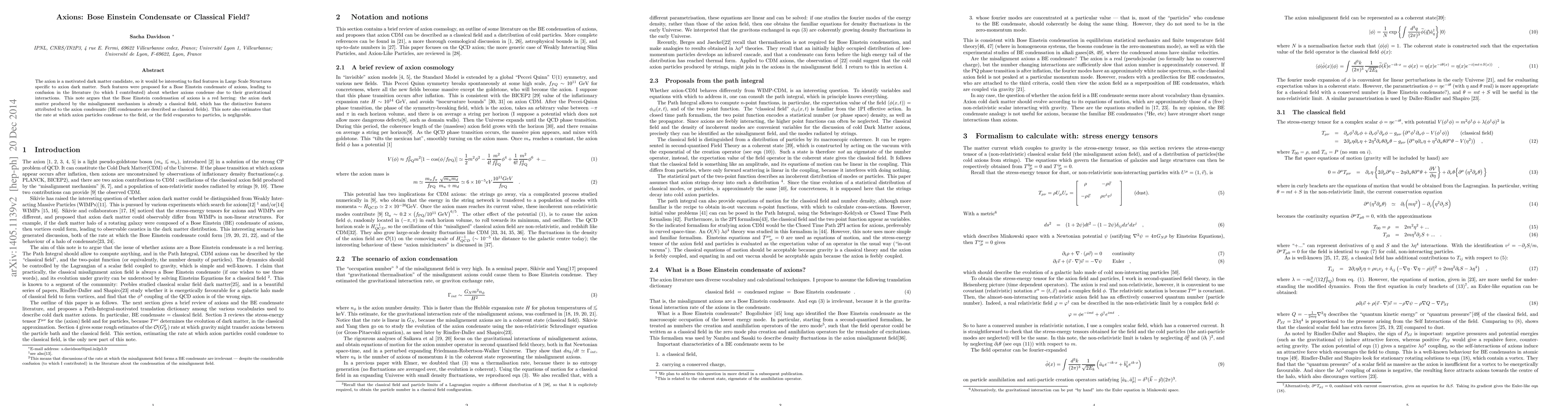 The axion is a motivated dark matter candidate, so it would be interesting to find features in Large Scale Structures specific to axion dark matter. Such features were proposed for a Bose Einstein condensate of axions, leading to confusion in the literature (to which I contributed) about whether axions condense due to their gravitational interactions. This note argues that the Bose Einstein condensation of axions is a red herring: the axion dark matter produced by the misalignment mechanism is already a classical field, which has the distinctive features attributed to the axion condensate (BE condensates are described as classical fields). This note also estimates that the rate at which axion particles condense to the field, or the field evaporates to particles, is negligeable.