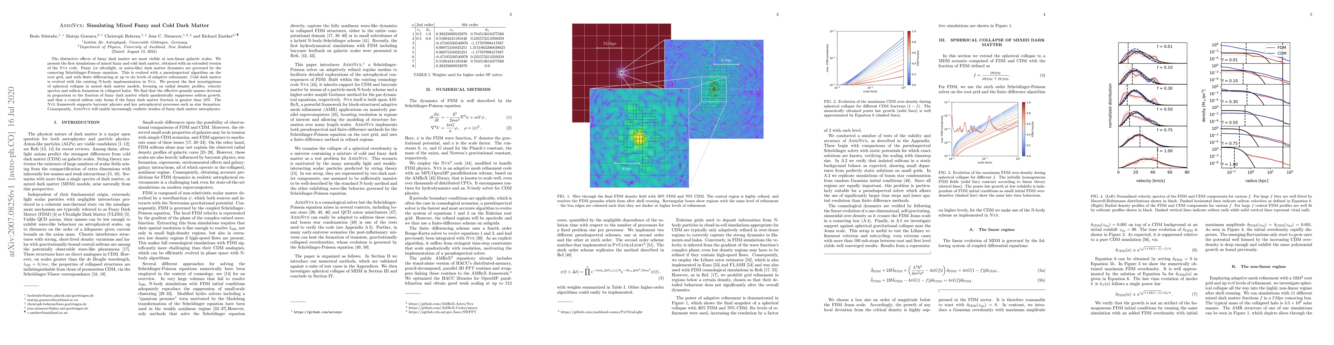 The distinctive effects of fuzzy dark matter are most visible at non-linear galactic scales. We present the first simulations of mixed fuzzy and cold dark matter, obtained with an extended version of the Nyx code. Fuzzy (or ultralight, or axion-like) dark matter dynamics are governed by the comoving Schr\"odinger-Poisson equation. This is evolved with a pseudospectral algorithm on the root grid, and with finite differencing at up to six levels of adaptive refinement. Cold dark matter is evolved with the existing N-body implementation in Nyx. We present the first investigations of spherical collapse in mixed dark matter models, focusing on radial density profiles, velocity spectra and soliton formation in collapsed halos. We find that the effective granule masses decrease in proportion to the fraction of fuzzy dark matter which quadratically suppresses soliton growth, and that a central soliton only forms if the fuzzy dark matter fraction is greater than 10\%. The Nyx framework supports baryonic physics and key astrophysical processes such as star formation. Consequently, AxioNyx will enable increasingly realistic studies of fuzzy dark matter astrophysics.