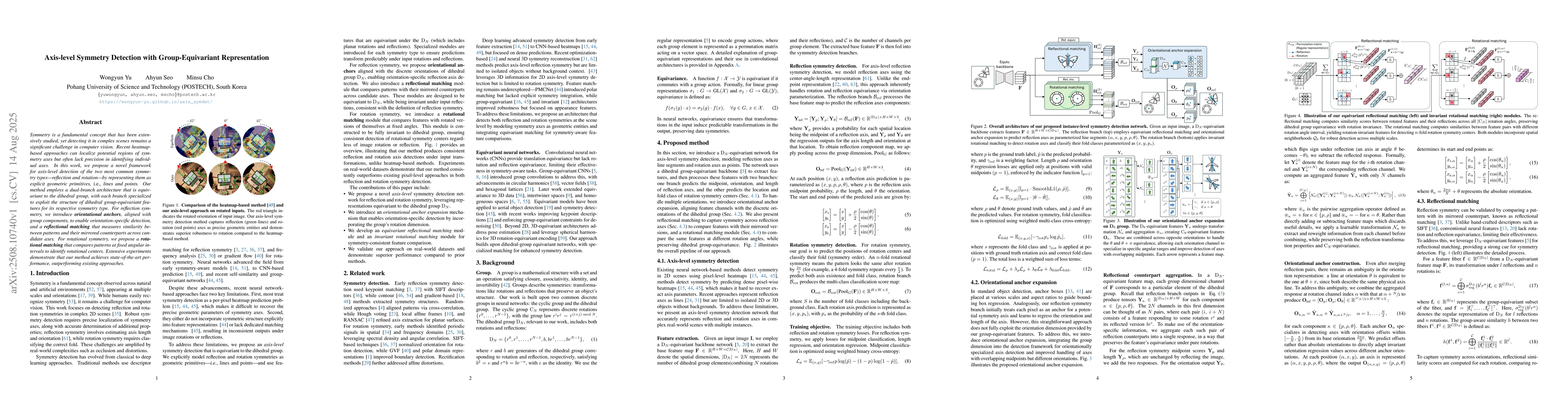 Symmetry is a fundamental concept that has been extensively studied, yet detecting it in complex scenes remains a significant challenge in computer vision. Recent heatmap-based approaches can localize potential regions of symmetry axes but often lack precision in identifying individual axes. In this work, we propose a novel framework for axis-level detection of the two most common symmetry types-reflection and rotation-by representing them as explicit geometric primitives, i.e. lines and points. Our method employs a dual-branch architecture that is equivariant to the dihedral group, with each branch specialized to exploit the structure of dihedral group-equivariant features for its respective symmetry type. For reflection symmetry, we introduce orientational anchors, aligned with group components, to enable orientation-specific detection, and a reflectional matching that measures similarity between patterns and their mirrored counterparts across candidate axes. For rotational symmetry, we propose a rotational matching that compares patterns at fixed angular intervals to identify rotational centers. Extensive experiments demonstrate that our method achieves state-of-the-art performance, outperforming existing approaches.