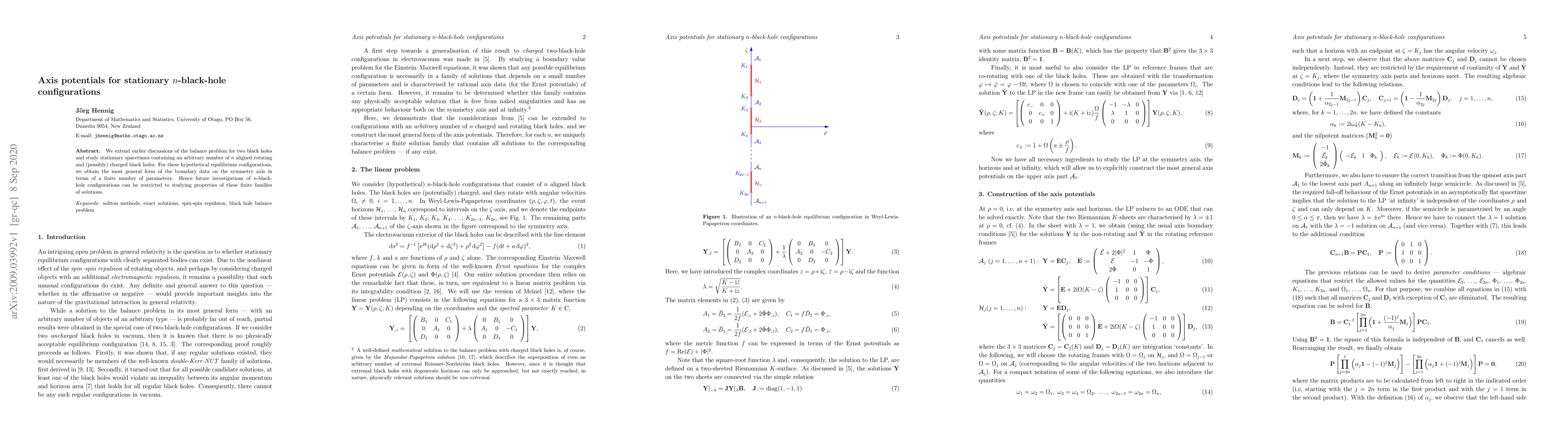 We extend earlier discussions of the balance problem for two black holes and study stationary spacetimes containing an arbitrary number of $n$ aligned rotating and (possibly) charged black holes. For these hypothetical equilibrium configurations, we obtain the most general form of the boundary data on the symmetry axis in terms of a finite number of parameters. Hence future investigations of $n$-black-hole configurations can be restricted to studying properties of these finite families of solutions.