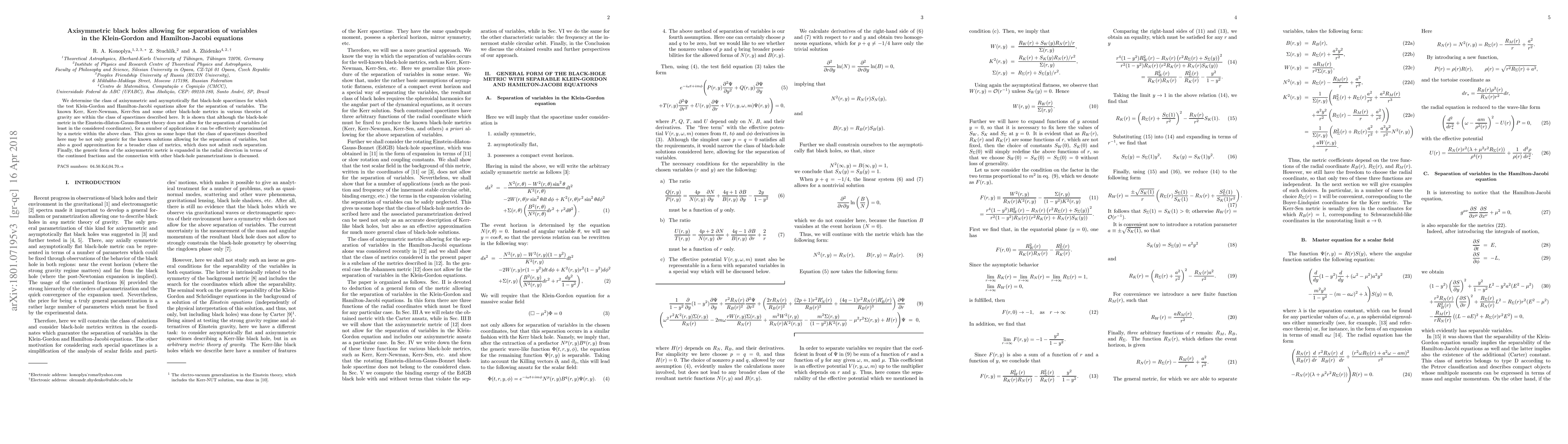 We determine the class of axisymmetric and asymptotically flat black-hole spacetimes for which the test Klein-Gordon and Hamilton-Jacobi equations allow for the separation of variables. The known Kerr, Kerr-Newman, Kerr-Sen and some other black-hole metrics in various theories of gravity are within the class of spacetimes described here. It is shown that although the black-hole metric in the Einstein-dilaton-Gauss-Bonnet theory does not allow for the separation of variables (at least in the considered coordinates), for a number of applications it can be effectively approximated by a metric within the above class. This gives us some hope that the class of spacetimes described here may be not only generic for the known solutions allowing for the separation of variables, but also a good approximation for a broader class of metrics, which does not admit such separation. Finally, the generic form of the axisymmetric metric is expanded in the radial direction in terms of the continued fractions and the connection with other black-hole parametrizations is discussed.