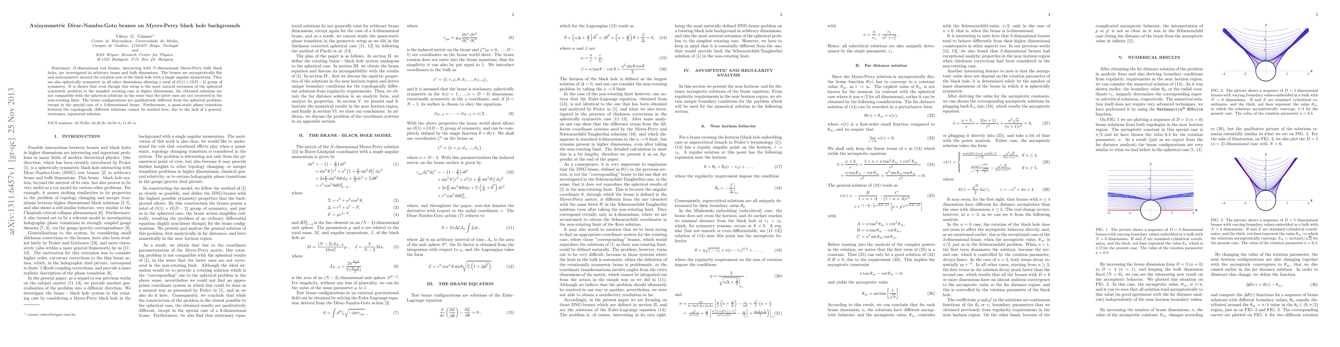 Researchers investigated stationary branes interacting with rotating Myers-Perry black holes in higher dimensions, finding that solutions don't match the non-rotating case and showing differences from spherical symmetry.
