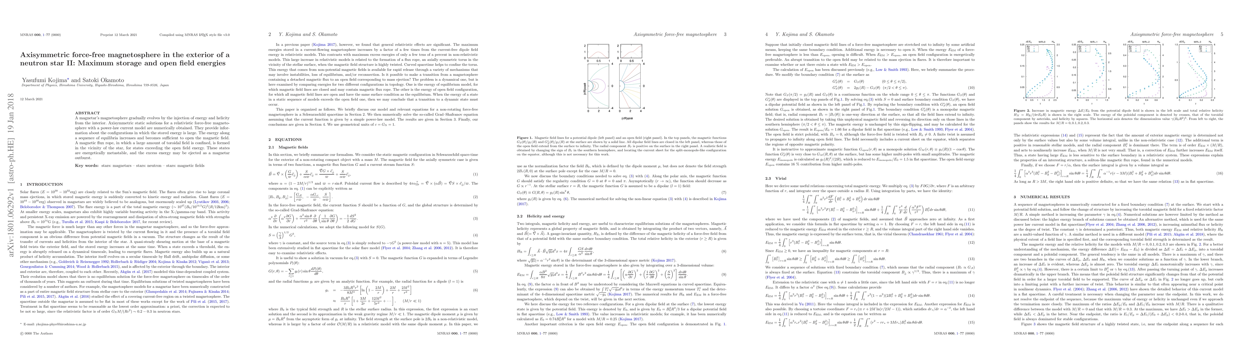 This paper investigates axisymmetric static solutions for a neutron star's magnetosphere, revealing configurations with maximum stored energy. The study finds that beyond a certain threshold, the energy can open the magnetic field, forming a toroidal flux rope that may lead to a magnetar outburst.