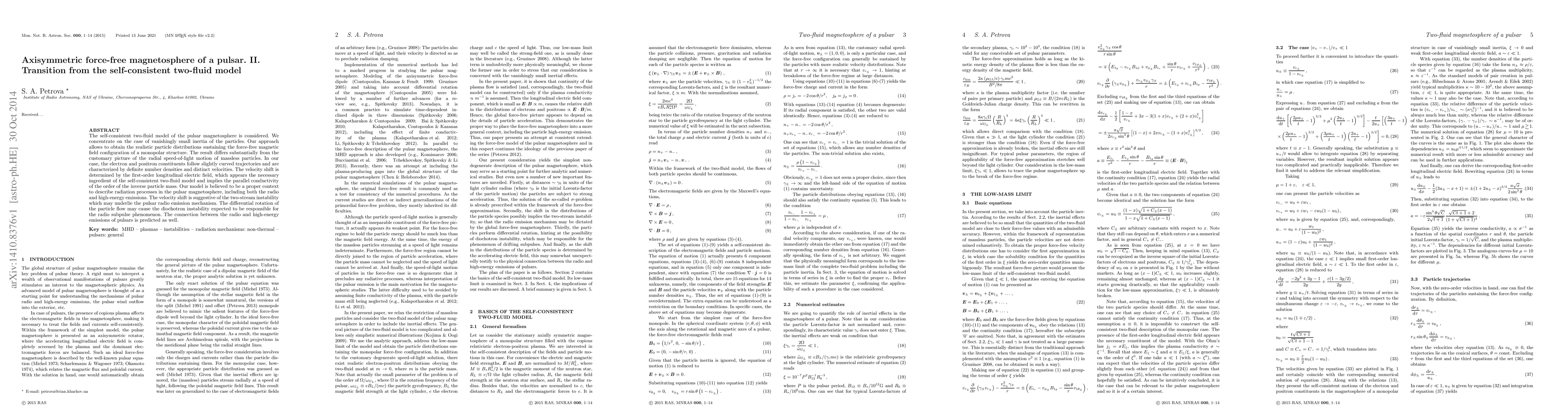The self-consistent two-fluid model of the pulsar magnetosphere is considered. We concentrate on the case of vanishingly small inertia of the particles. Our approach allows to obtain the realistic particle distributions sustaining the force-free magnetic field configuration of a monopolar structure. The result differs substantially from the customary picture of the radial speed-of-light motion of massless particles. In our case, the electron and positron constituents follow slightly curved trajectories and are characterized by definite number densities and distinct velocities. The velocity shift is determined by the first-order longitudinal electric field, which appears the necessary ingredient of the self-consistent two-fluid model and implies the parallel conductivity of the order of the inverse particle mass. Our model is believed to be a proper context to describe radiation processes in the pulsar magnetosphere, including both the radio and high-energy emissions. The velocity shift is suggestive of the two-stream instability which may underlie the pulsar radio emission mechanism. The differential rotation of the particle flow may cause the diochotron instability expected to be responsible for the radio subpulse phenomenon. The connection between the radio and high-energy emissions of pulsars is predicted as well.