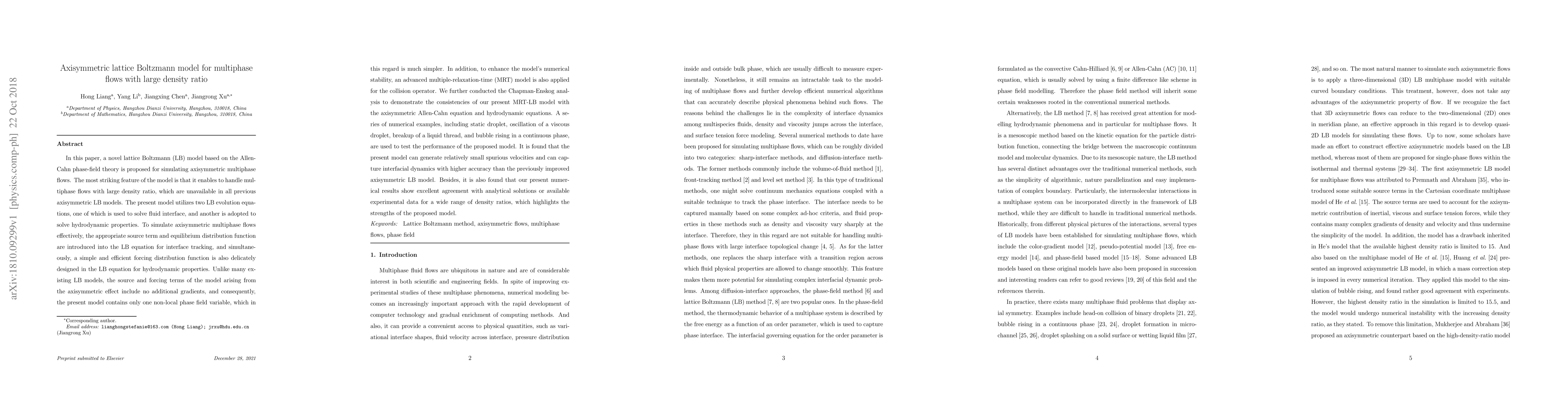 This paper proposes a novel axisymmetric lattice Boltzmann model for simulating multiphase flows with large density ratios, utilizing two evolution equations to track fluid interfaces and solve hydrodynamic properties. The model demonstrates higher accuracy and fewer spurious velocities compared to previous models, validated through various numerical simulations.