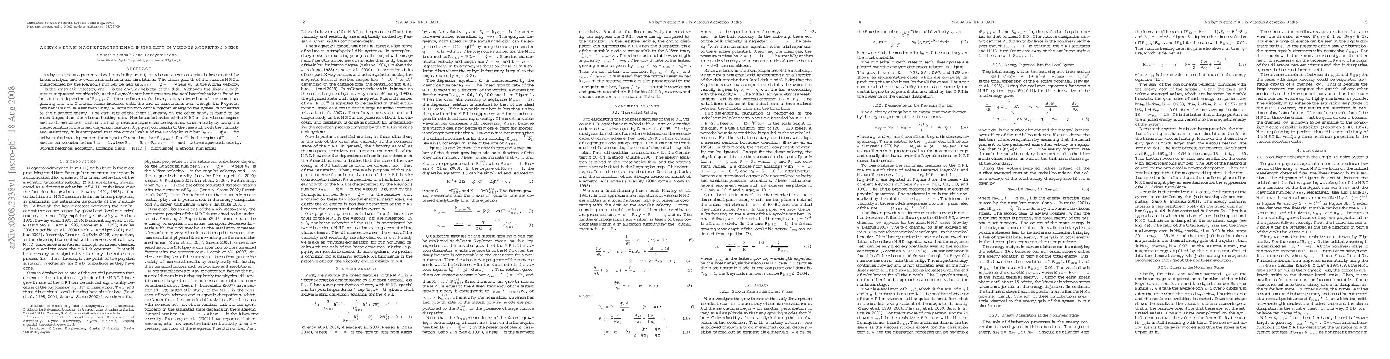 This paper investigates the axisymmetric magnetorotational instability (MRI) in viscous accretion disks through linear analysis and nonlinear simulations. Despite the linear growth rate being suppressed at low Reynolds numbers, nonlinear MRI behavior persists, converting injected energy into magnetic energy rather than thermal energy. The study concludes that the critical value for active turbulence depends on the magnetic Prandtl number, varying with the ratio of magnetic to kinematic viscosity.