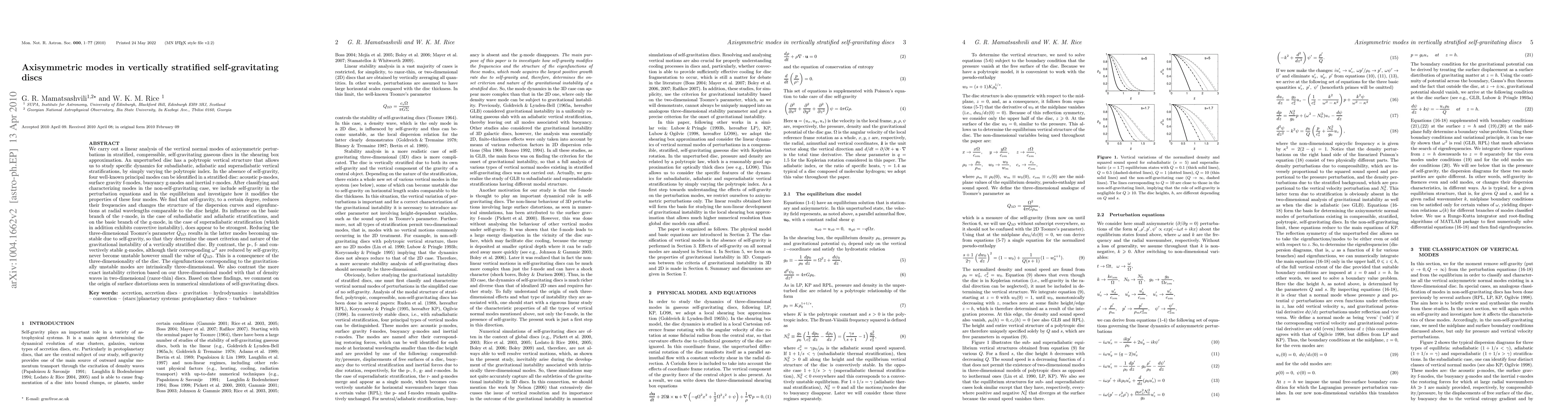 This paper investigates axisymmetric vertical normal modes in stratified self-gravitating discs, finding that self-gravity modifies the frequencies and structures of acoustic, surface gravity, buoyancy, and inertial modes. Self-gravity induces instability in the basic branches of r- and g-modes, leading to gravitational instability in the disc, while p-, f-, and convectively stable g-modes remain stable regardless of self-gravity.
