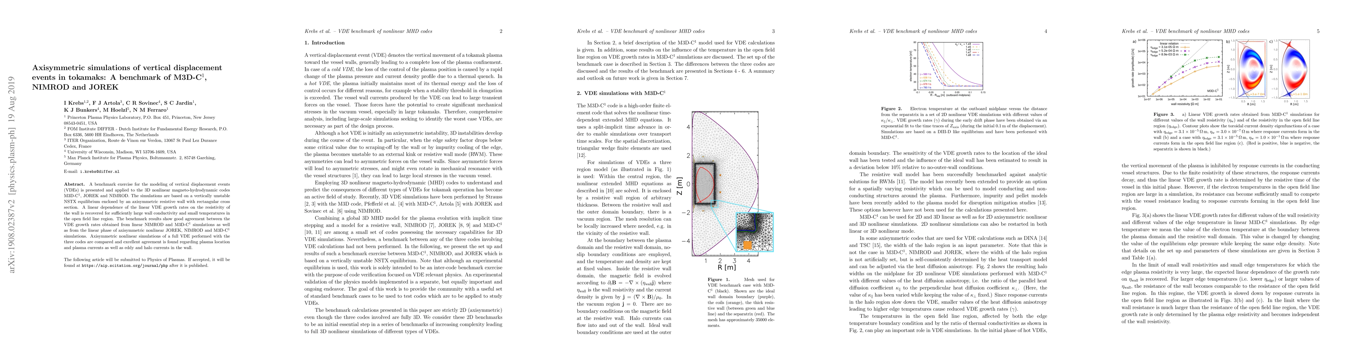 A benchmark exercise for the modeling of vertical displacement events (VDEs) is presented and applied to the 3D nonlinear magneto-hydrodynamic codes M3D-C$^1$, JOREK and NIMROD. The simulations are based on a vertically unstable NSTX equilibrium enclosed by an axisymmetric resistive wall with rectangular cross section. A linear dependence of the linear VDE growth rates on the resistivity of the wall is recovered for sufficiently large wall conductivity and small temperatures in the open field line region. The benchmark results show good agreement between the VDE growth rates obtained from linear NIMROD and M3D-C$^1$ simulations as well as from the linear phase of axisymmetric nonlinear JOREK, NIMROD and M3D-C$^1$ simulations. Axisymmetric nonlinear simulations of a full VDE performed with the three codes are compared and excellent agreement is found regarding plasma location and plasma currents as well as eddy and halo currents in the wall.