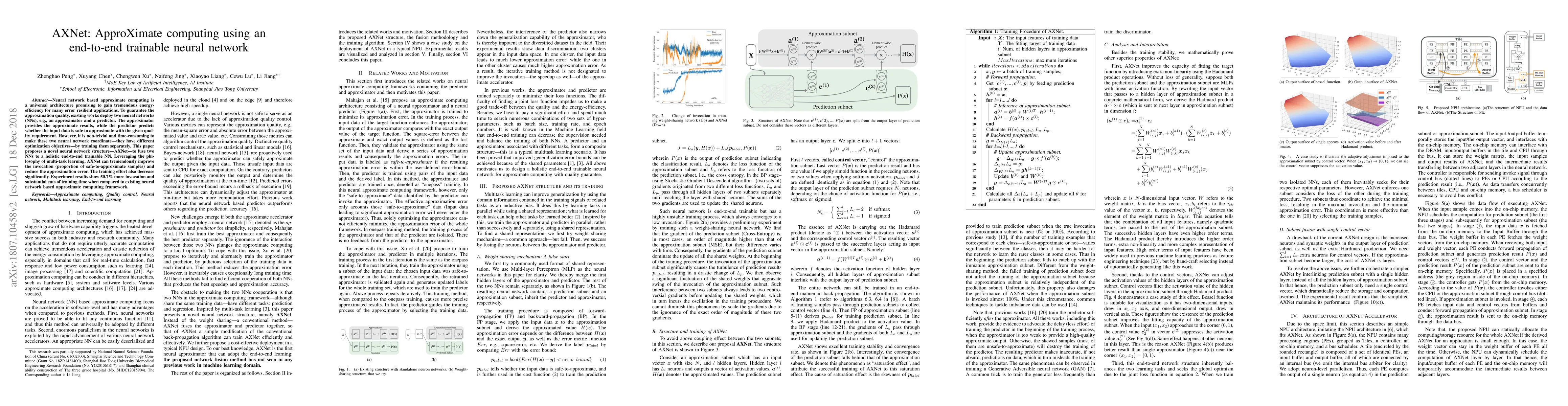 AXNet proposes a novel end-to-end trainable neural network structure that fuses an approximator and predictor into one network, leveraging multi-task learning to improve invocation and reduce approximation error while significantly decreasing training time. Experimental results show a 50.7% increase in safe-to-approximate samples and substantial reductions in training effort compared to existing methods.