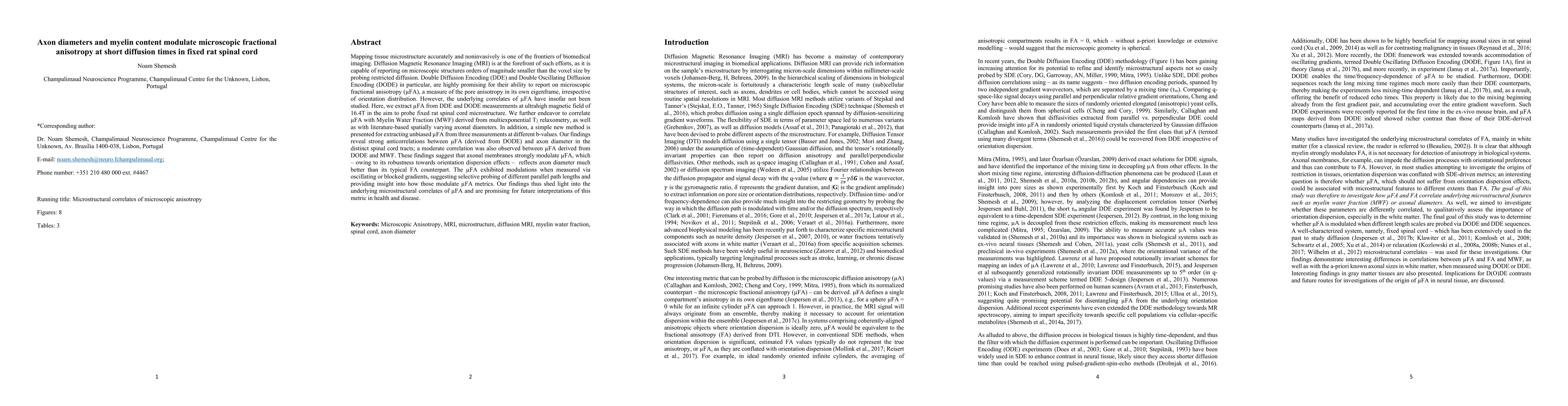 This study investigates the relationship between microscopic fractional anisotropy (μFA) derived from Double Diffusion Encoding (DDE) and Double Oscillating Diffusion Encoding (DODE) MRI, and the microstructure of fixed rat spinal cord, including axonal diameters and myelin content. The findings indicate that μFA correlates inversely with axonal diameter and moderately with Myelin Water Fraction, suggesting that μFA is a robust measure reflecting axonal dimensions better than traditional FA.