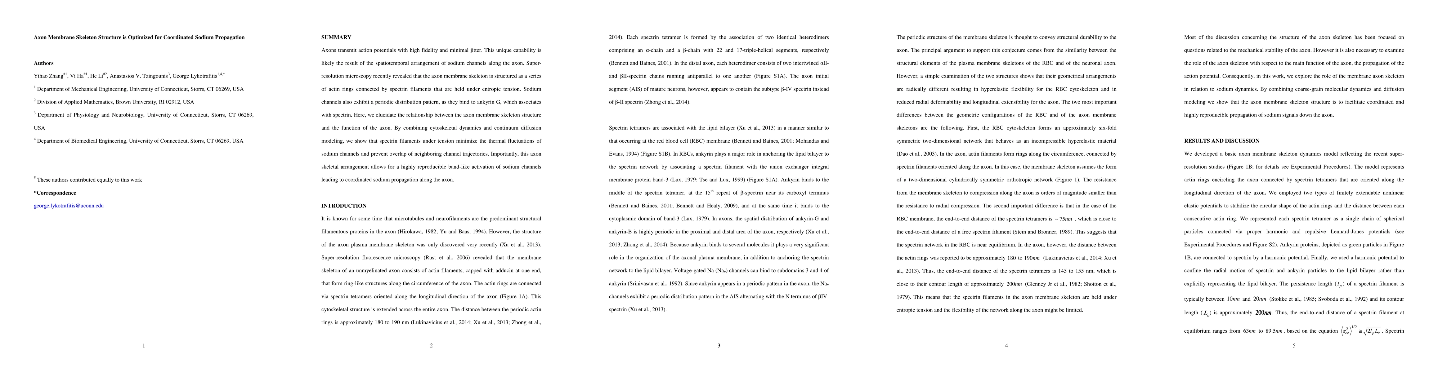 This study reveals that the axon membrane skeleton, composed of actin rings and spectrin filaments under tension, optimizes sodium channel distribution, minimizing thermal fluctuations and ensuring coordinated sodium propagation for high fidelity action potential transmission.