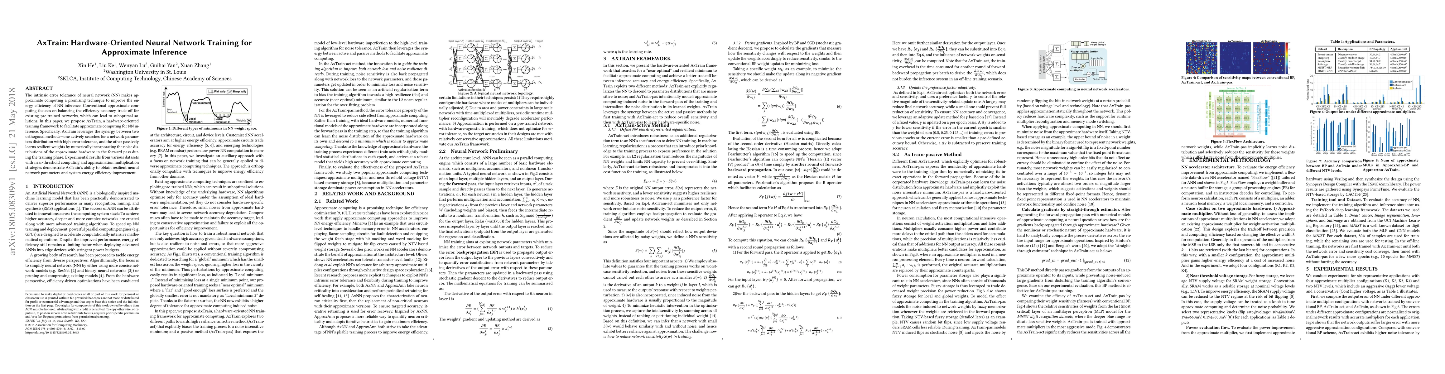 AxTrain, a hardware-oriented training framework that combines active and passive methods to facilitate approximate computing for NN inference, improving energy efficiency while maintaining accuracy.