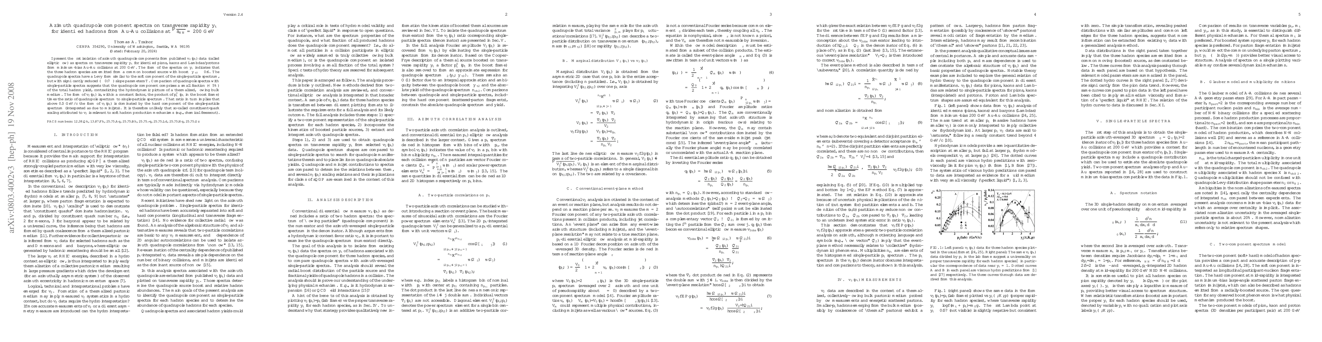This paper isolates azimuth quadrupole components from elliptic flow data for identified pions, kaons, and lambdas/protons in Au-Au collisions at 200 GeV, revealing that these hadrons originate from a common boosted source. The study finds that the quadrupole component constitutes less than 5% of the total yield, challenging the hydrodynamic model of a thermalized medium.