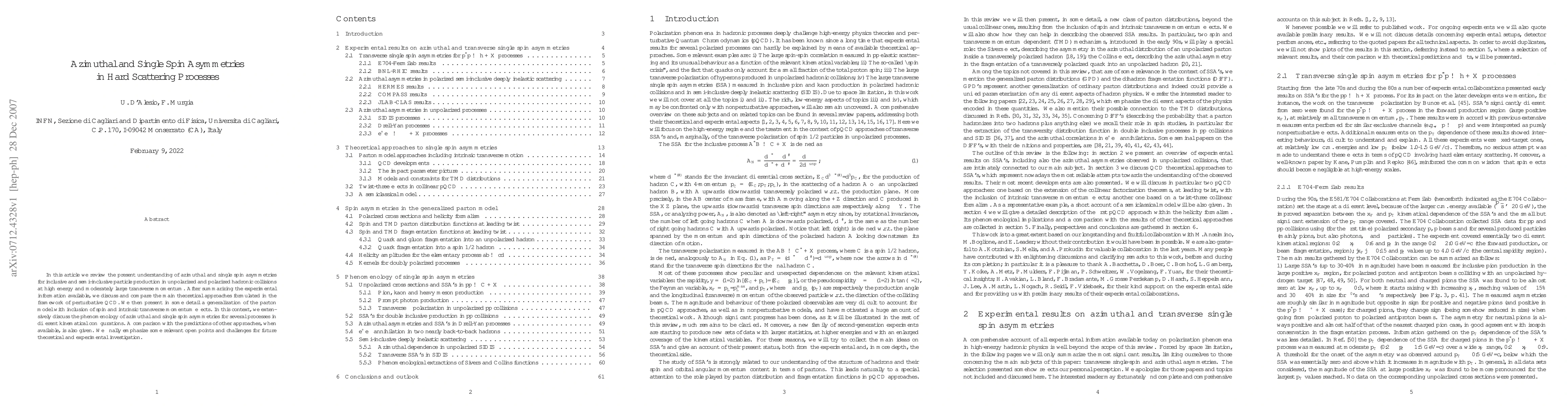 This paper reviews azimuthal and single spin asymmetries in high-energy hadronic collisions, summarizing experimental data and comparing various theoretical approaches within perturbative QCD. It also presents a detailed parton model extension considering spin and intrinsic transverse momentum, highlighting open challenges for future research.