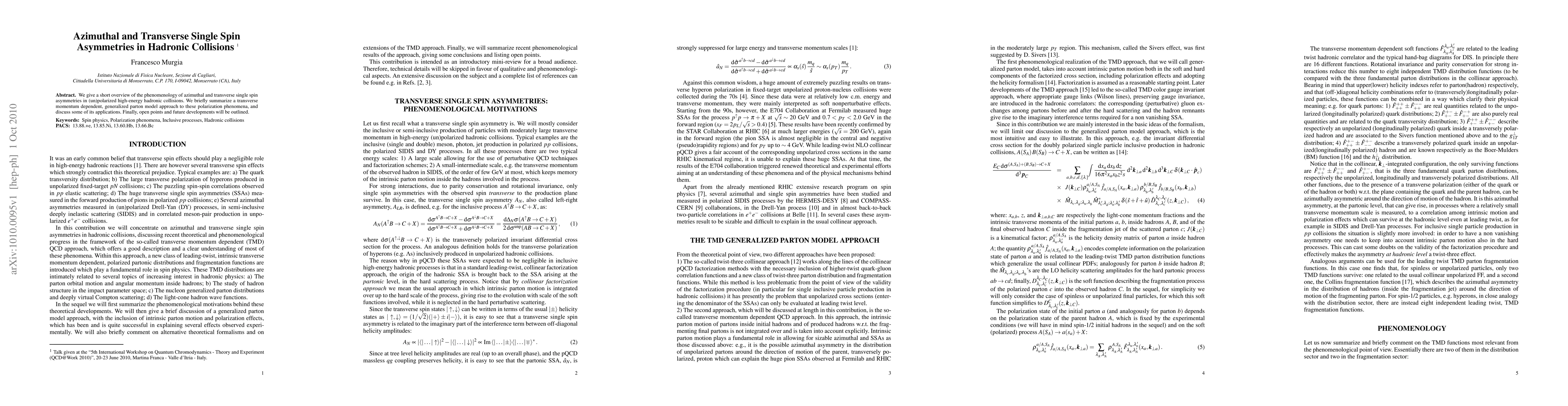 This paper provides an overview of the phenomenology of azimuthal and transverse single spin asymmetries in high-energy hadronic collisions, summarizing a transverse momentum dependent parton model approach and discussing its applications, while also highlighting open questions and future research directions.