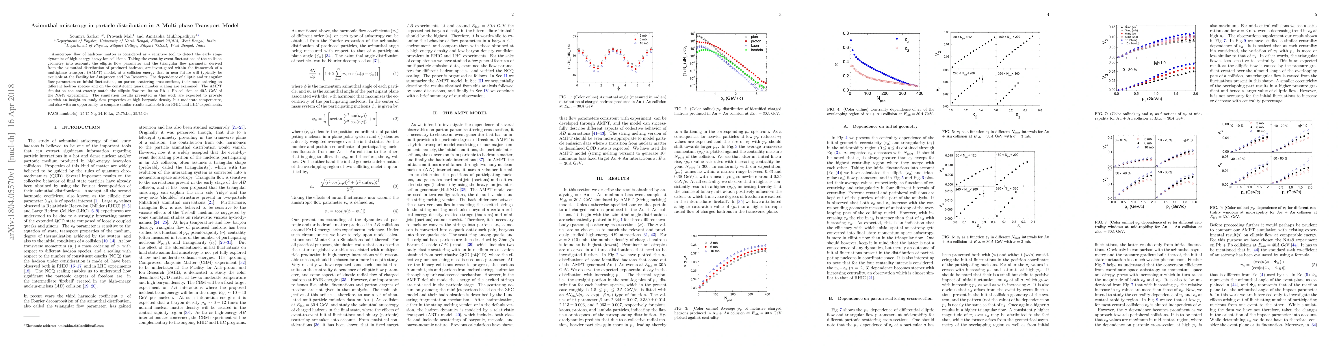 Anisotropic flow of hadronic matter is considered as a sensitive tool to detect the early stage dynamics of high-energy heavy-ion collisions. Taking the event by event fluctuations of the collision geometry into account, the elliptic flow parameter and the triangular flow parameter derived from the azimuthal distribution of produced hadrons, are investigated within the framework of a multiphase transport (AMPT) model, at a collision energy that in near future will typically be available at the Facility for Antiproton and Ion Research. The dependence of elliptic and triangular flow parameters on initial fluctuations, on parton scattering cross-sections, their mass ordering on different hadron species and on the constituent quark number scaling are examined. The AMPT simulation can not exactly match the elliptic flow results on Pb + Pb collision at 40A GeV of the NA49 experiment. The simulation results presented in this work are expected to provide us with an insight to study flow properties at high baryonic density but moderate temperature, and also with an opportunity to compare similar results available from RHIC and LHC experiments.