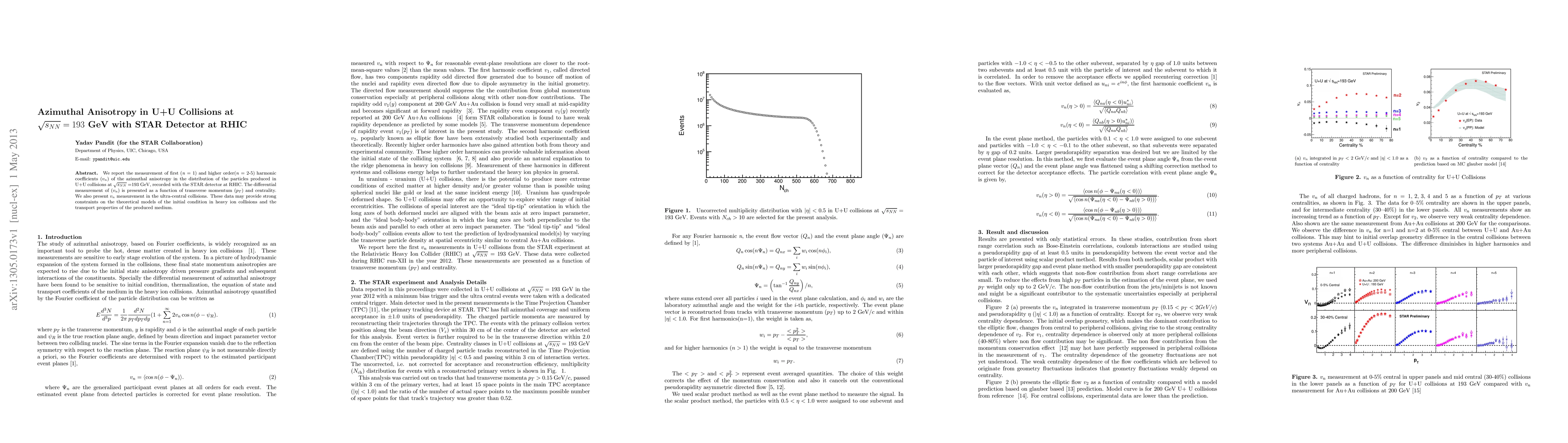 This paper reports measurements of azimuthal anisotropy harmonics ($v_{n}$) in U+U collisions at $\sqrt{s_{NN}} = 193$ GeV using the STAR detector at RHIC. The study presents differential $v_{n}$ coefficients as functions of transverse momentum and collision centrality, providing insights into initial conditions and the medium's transport properties in heavy ion collisions.
