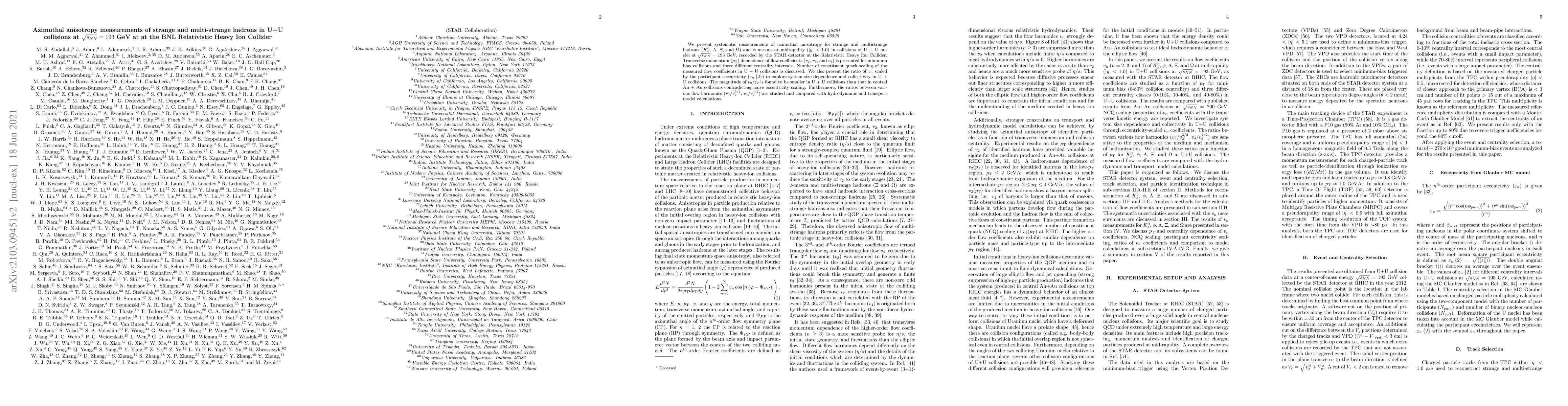 This paper reports azimuthal anisotropy measurements of strange and multistrange hadrons in U+U collisions at 193 GeV, revealing transverse momentum dependence of flow coefficients and discussing the scaling of these coefficients. The study finds that the ratio of $v_{2}$ to participant eccentricity is smaller in U+U than in central Au+Au collisions, challenging simple eccentricity scaling, and compares flow harmonic ratios to model predictions.
