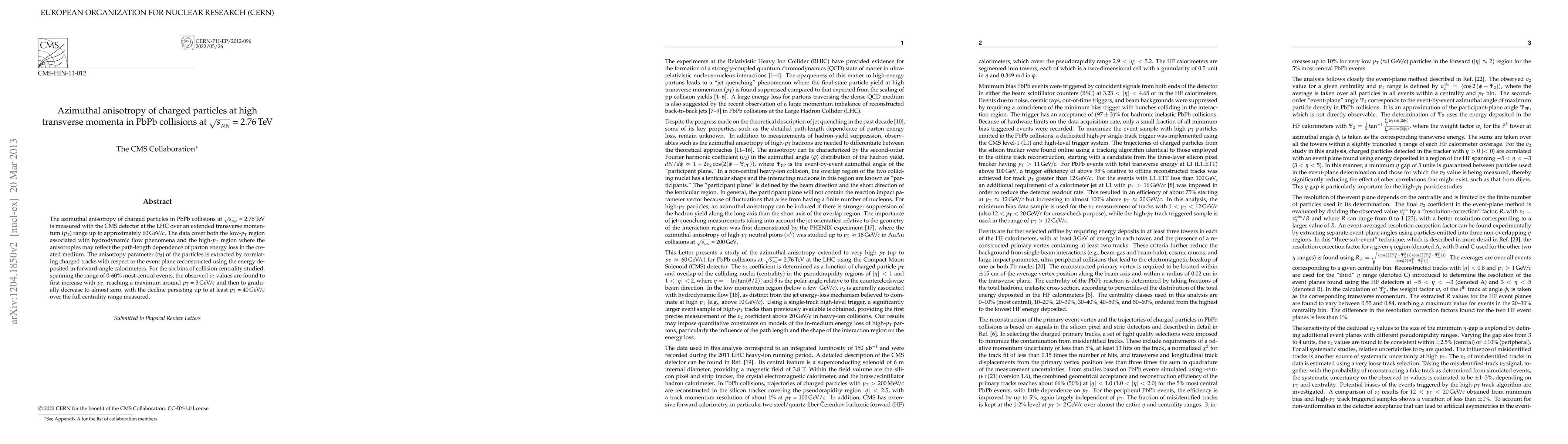 This paper measures the azimuthal anisotropy of charged particles in PbPb collisions at 2.76 TeV, finding that the anisotropy parameter (v2) increases with transverse momentum up to 3 GeV, then decreases, suggesting a transition from hydrodynamic flow to parton energy loss effects. The v2 values decline persist across high transverse momenta up to 60 GeV.