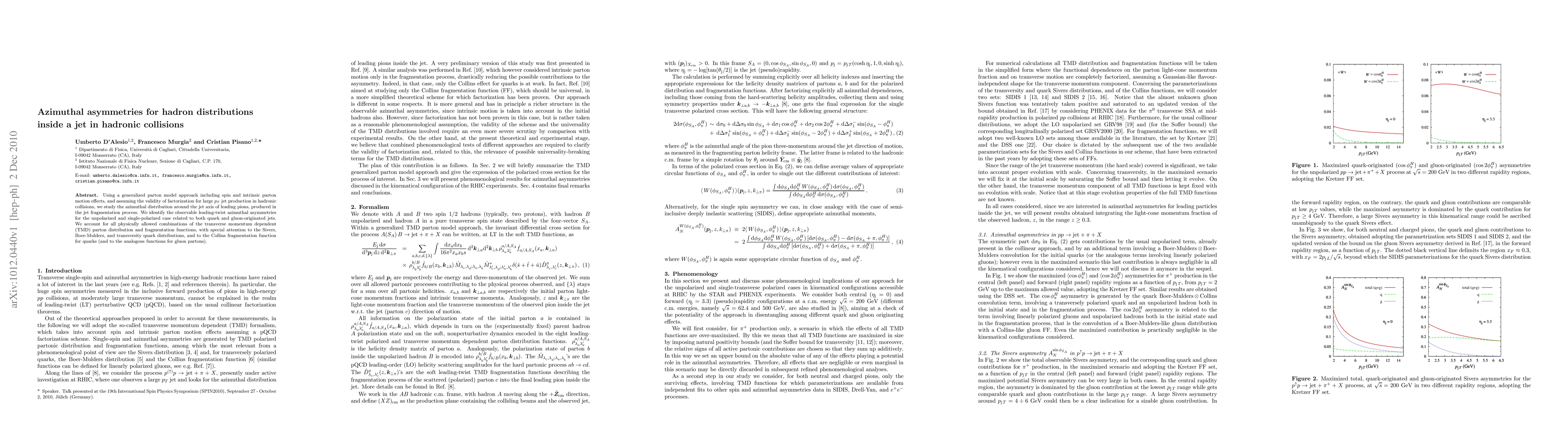 Using a generalized parton model approach including spin and intrinsic parton motion effects, and assuming the validity of factorization for large p_T jet production in hadronic collisions, we study the azimuthal distribution around the jet axis of leading pions, produced in the jet fragmentation process. We identify the observable leading-twist azimuthal asymmetries for the unpolarized and single-polarized case related to both quark and gluon-originated jets. We account for all physically allowed combinations of the transverse momentum dependent (TMD) parton distribution and fragmentation functions, with special attention to the Sivers, Boer-Mulders, and transversity quark distributions, and to the Collins fragmentation function for quarks (and to the analogous functions for gluon partons).