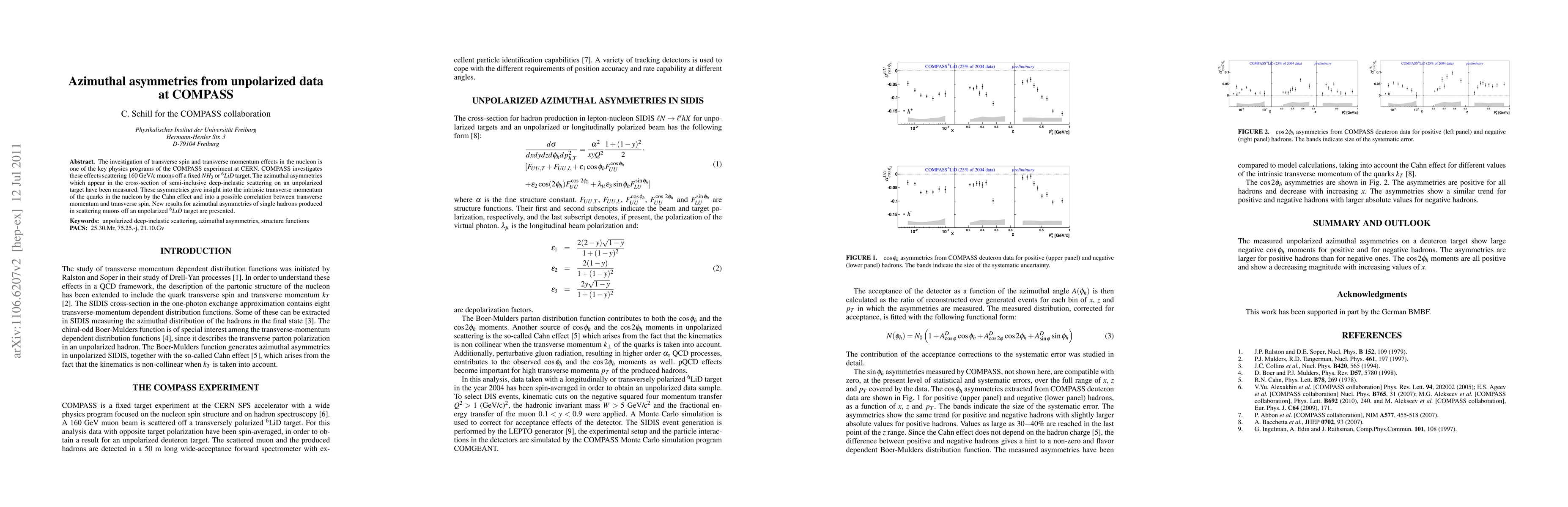 The COMPASS experiment at CERN measures azimuthal asymmetries in unpolarized data from semi-inclusive deep-inelastic scattering to explore transverse spin and momentum effects in nucleons. New results reveal insights into quark intrinsic transverse momentum and potential correlations between transverse momentum and spin.