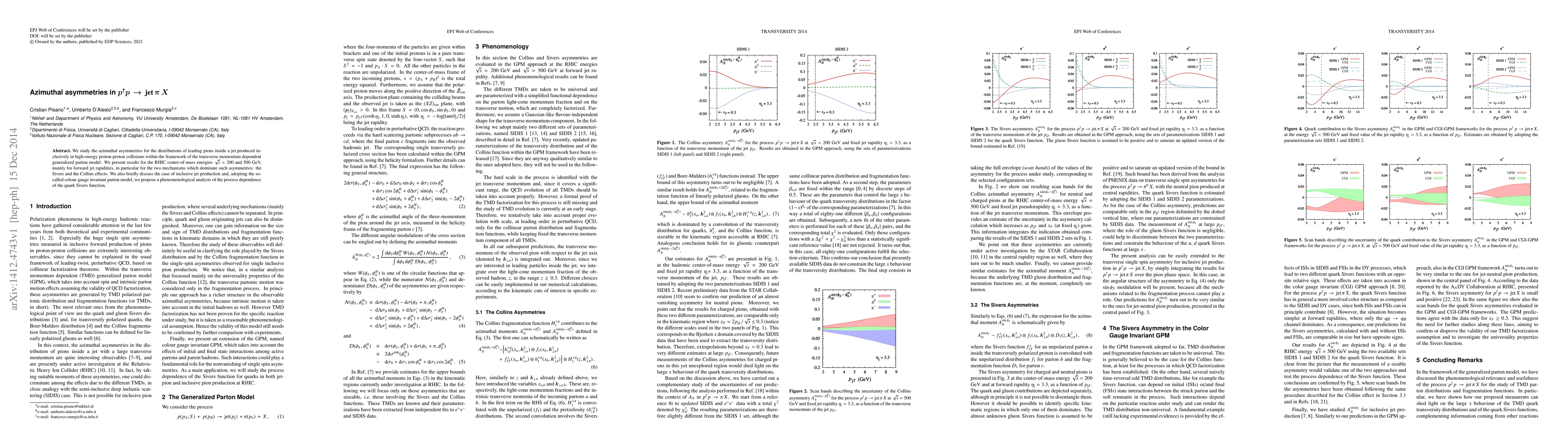 This paper investigates azimuthal asymmetries in high-energy proton-proton collisions, focusing on the distributions of leading pions within jets, using the transverse momentum dependent generalized parton model. It highlights the Sivers and Collins effects at RHIC energies and proposes a phenomenological analysis of quark Sivers function dependence.