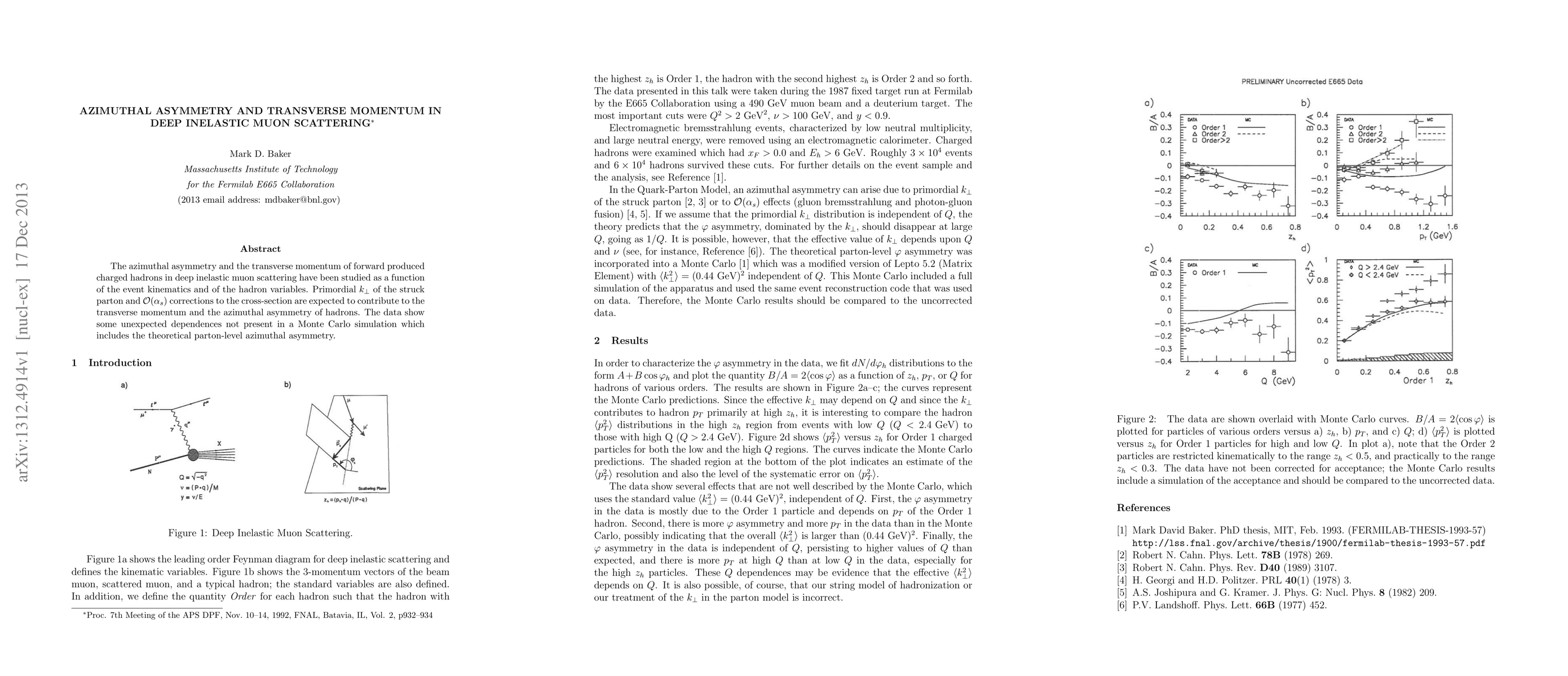 Summary: This study investigates the azimuthal asymmetry and transverse momentum in deep inelastic muon scattering, revealing unexpected dependencies in the data that differ from theoretical predictions, suggesting potential contributions from primordial $k_T$ and O($\alpha_s$) corrections.