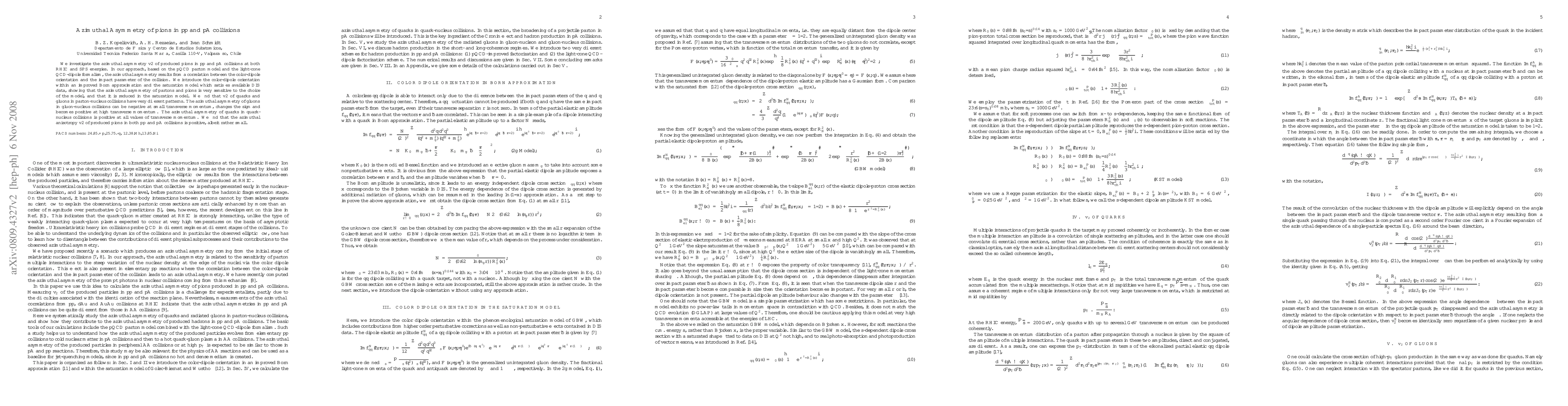 The research investigates the azimuthal asymmetry (v2) of pions produced in pp and pA collisions at RHIC and SPS energies using a pQCD parton model and light-cone QCD-dipole formalism. The azimuthal asymmetry is attributed to the correlation between color-dipole orientation and impact parameter of the collision, incorporating an improved Born approximation and saturation model.