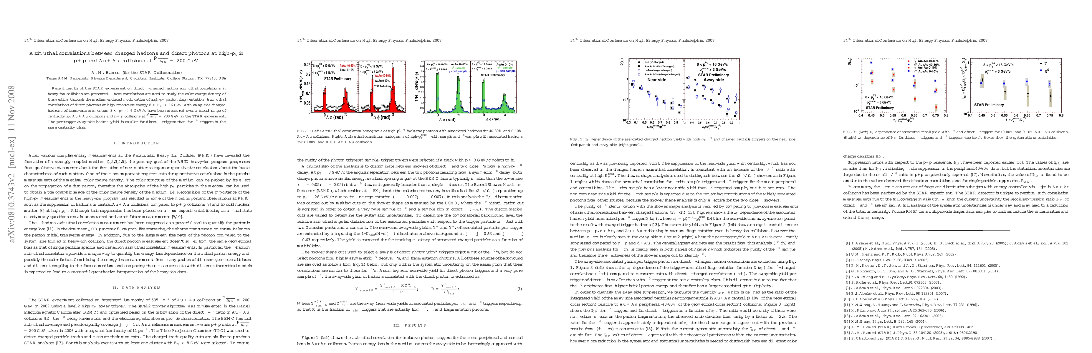 Recent results at STAR for direct $\gamma$-charged hadron azimuthal correlations in heavy-ion collisions are presented. These correlations are used to study the color charge density of the medium through the medium-induced modification of high-p$_T$ parton fragmentation. Azimuthal correlations of direct photons at high transverse energy 8 $<$ E$_T$ $<$ 16 GeV with away-side charged hadrons of transverse momentum 3 $<$ p$_T$ $<$ 6 GeV/c have been measured over a broad range of centrality for $Au+Au$ collisions and $p+p$ collisions at $\sqrt{s_{NN}}$ = 200 GeV in the STAR experiment. The per-trigger away-side yield of direct $\gamma$ is smaller than from $\pi^{0}$ triggers in the same centrality class.