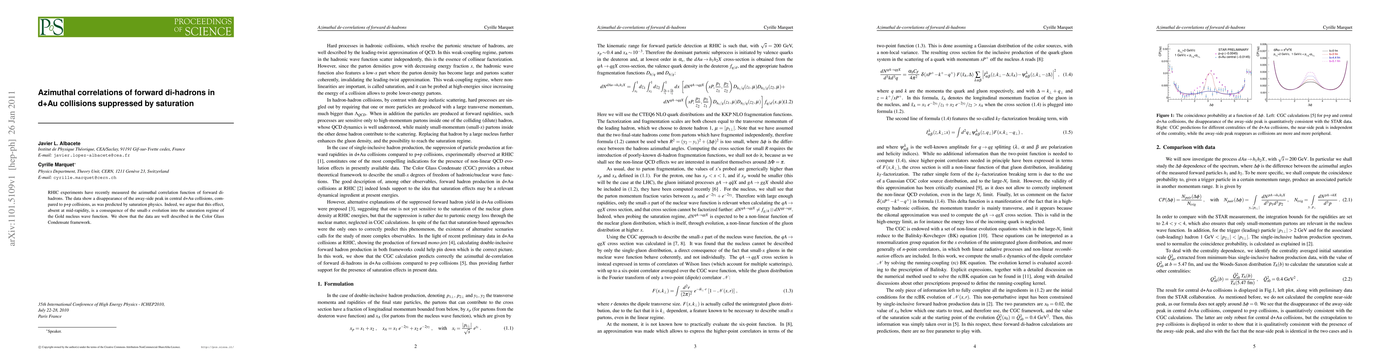 The paper presents a detailed calculation of double-inclusive forward hadron production in both the CGC and alternative frameworks, demonstrating the CGC's predictive power for azimuthal di-hadron correlations in d+Au collisions.