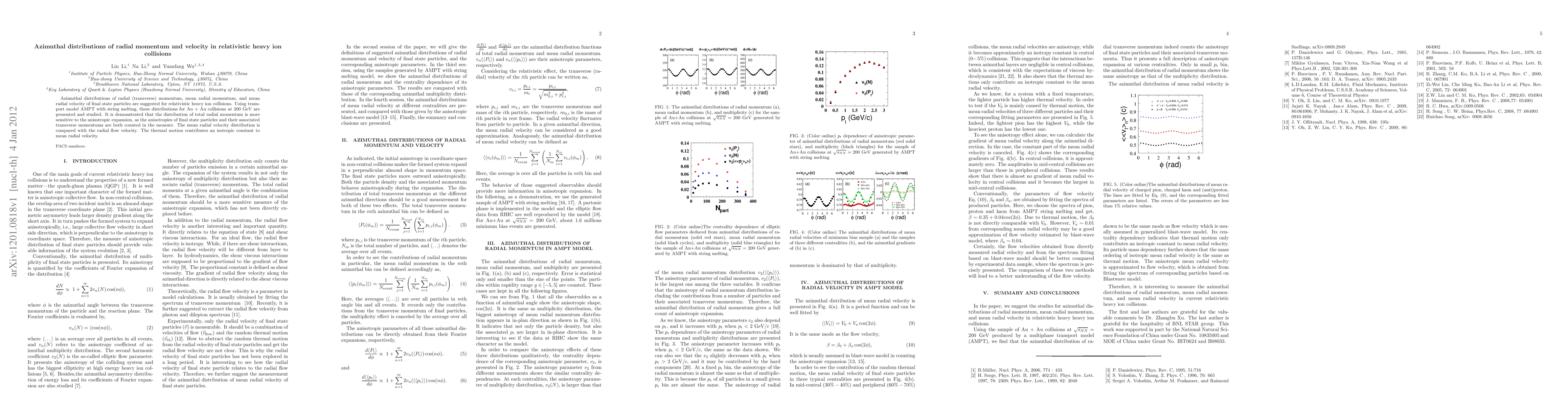 The paper introduces and analyzes azimuthal distributions of radial momentum and velocity, providing a detailed comparison with existing models and offering new insights into heavy ion collision dynamics.