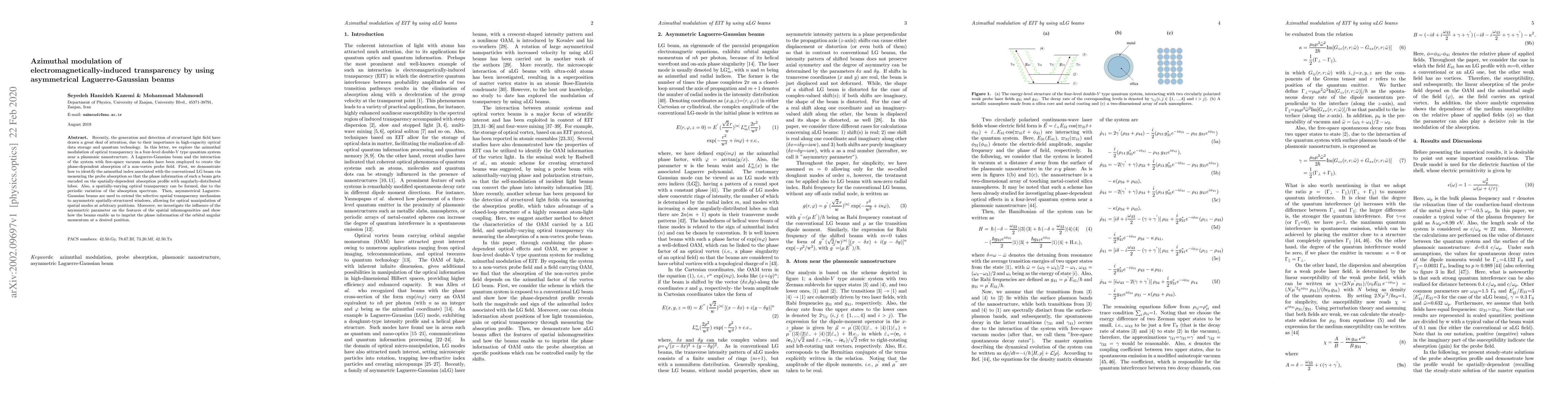 This paper explores the use of asymmetrical Laguerre-Gaussian beams to modulate optical transparency in a four-level quantum system near a plasmonic nanostructure. The study demonstrates how these beams can create phase-dependent absorption profiles and spatially-varying optical transparency, enabling the manipulation of spatial modes at specific positions.