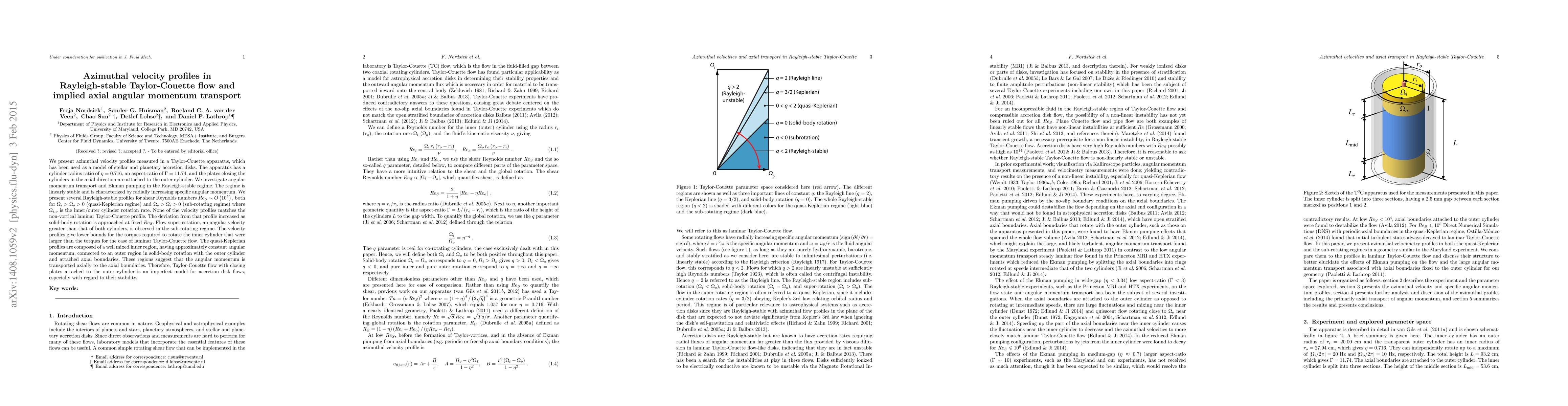 This paper measures azimuthal velocity profiles in Rayleigh-stable Taylor-Couette flow, revealing deviations from laminar profiles and indicating angular momentum transport to axial boundaries. The study highlights that the flow model is imperfect for stellar and planetary accretion disk simulations due to its stability characteristics.