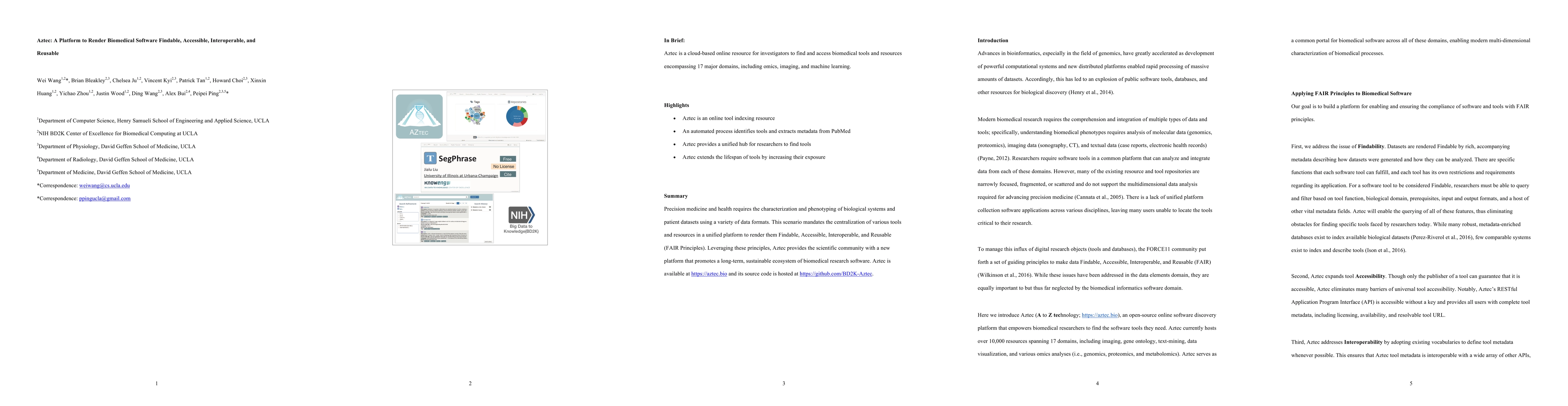 Aztec is a new platform designed to centralize biomedical research software, ensuring it adheres to the FAIR Principles for data management. It aims to create a sustainable ecosystem for precision medicine by making software findable, accessible, interoperable, and reusable.