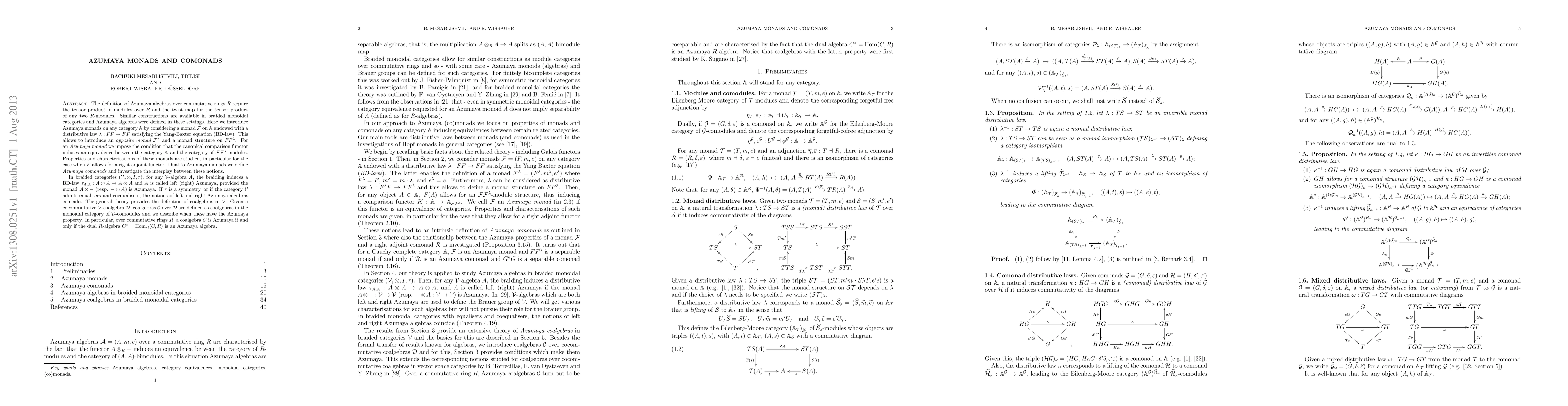 This paper introduces Azumaya monads and comonads within the framework of braided monoidal categories. It defines Azumaya monads as monads satisfying a Yang-Baxter equation, and characterizes them by their equivalence to the underlying category of modules. It also defines Azumaya comonads and explores their dual relationship to monads, particularly in braided monoidal categories.