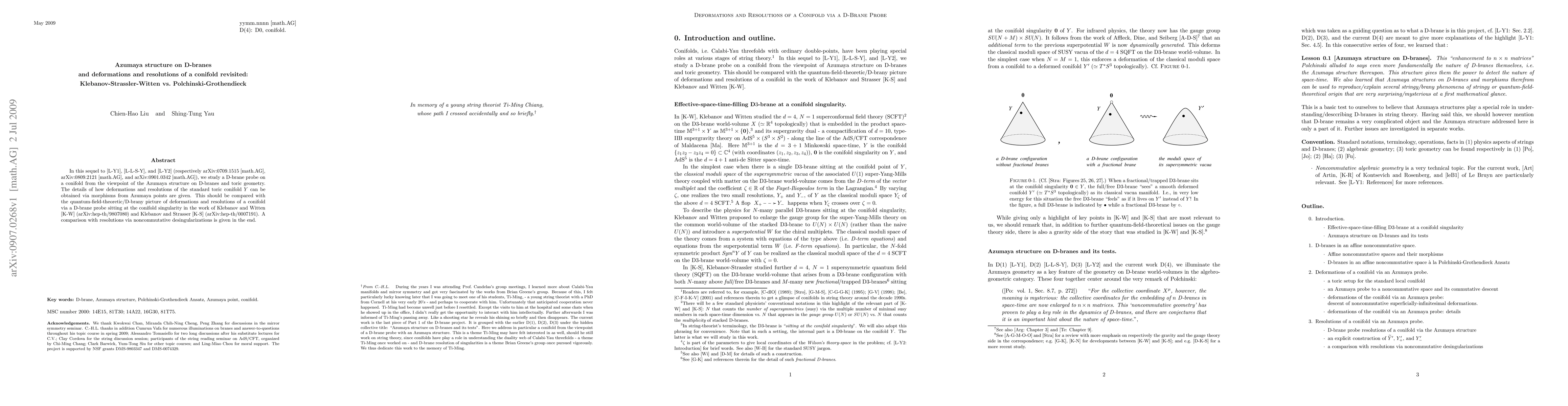 In this sequel to [L-Y1], [L-L-S-Y], and [L-Y2] (respectively arXiv:0709.1515 [math.AG], arXiv:0809.2121 [math.AG], and arXiv:0901.0342 [math.AG]), we study a D-brane probe on a conifold from the viewpoint of the Azumaya structure on D-branes and toric geometry. The details of how deformations and resolutions of the standard toric conifold $Y$ can be obtained via morphisms from Azumaya points are given. This should be compared with the quantum-field-theoretic/D-brany picture of deformations and resolutions of a conifold via a D-brane probe sitting at the conifold singularity in the work of Klebanov and Witten [K-W] (arXiv:hep-th/9807080) and Klebanov and Strasser [K-S] (arXiv:hep-th/0007191). A comparison with resolutions via noncommutative desingularizations is given in the end.