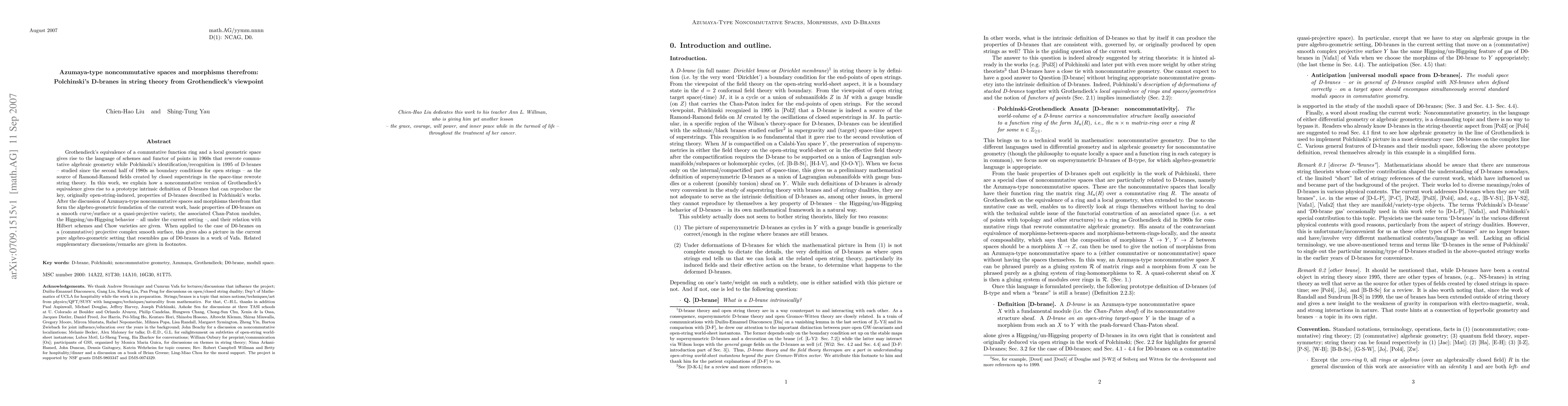 The introduction of Azumaya-type noncommutative spaces as a means to define D-branes intrinsically, linking Polchinski's D-branes with Grothendieck's equivalence.
