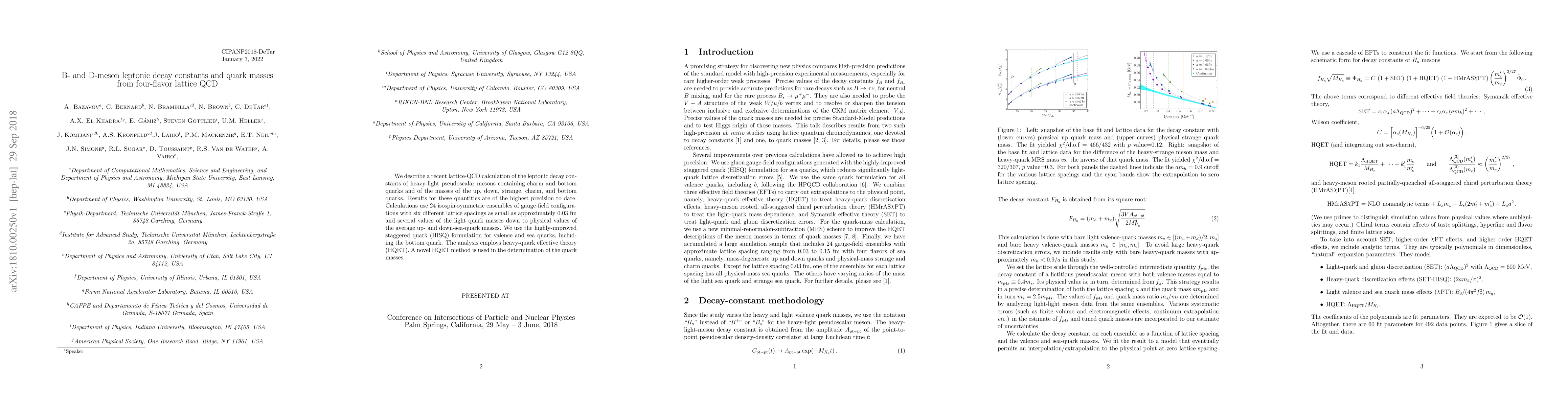 We describe a recent lattice-QCD calculation of the leptonic decay constants of heavy-light pseudoscalar mesons containing charm and bottom quarks and of the masses of the up, down, strange, charm, and bottom quarks. Results for these quantities are of the highest precision to date. Calculations use 24 isospin-symmetric ensembles of gauge-field configurations with six different lattice spacings as small as approximately 0.03 fm and several values of the light quark masses down to physical values of the average up- and down-sea-quark masses. We use the highly-improved staggered quark (HISQ) formulation for valence and sea quarks, including the bottom quark. The analysis employs heavy-quark effective theory (HQET). A novel HQET method is used in the determination of the quark masses.