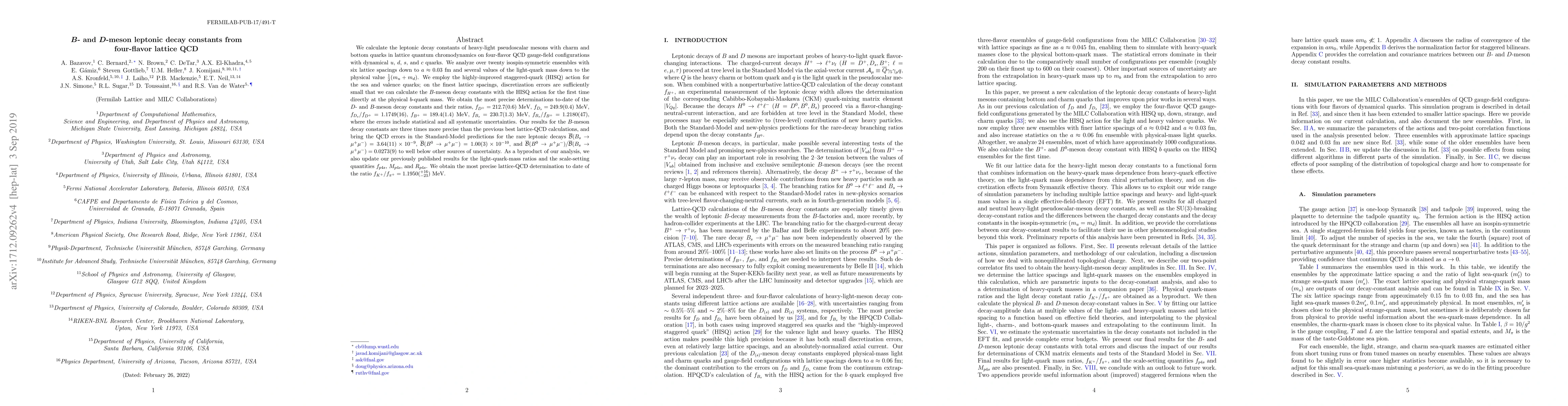 We calculate the leptonic decay constants of heavy-light pseudoscalar mesons with charm and bottom quarks in lattice quantum chromodynamics on four-flavor QCD gauge-field configurations with dynamical $u$, $d$, $s$, and $c$ quarks. We analyze over twenty isospin-symmetric ensembles with six lattice spacings down to $a\approx 0.03$~fm and several values of the light-quark mass down to the physical value $\frac{1}{2}(m_u+m_d)$. We employ the highly-improved staggered-quark (HISQ) action for the sea and valence quarks; on the finest lattice spacings, discretization errors are sufficiently small that we can calculate the $B$-meson decay constants with the HISQ action for the first time directly at the physical $b$-quark mass. We obtain the most precise determinations to-date of the $D$- and $B$-meson decay constants and their ratios, $f_{D^+} = 212.7(0.6)$~MeV, $f_{D_s} = 249.9(0.4)$~MeV, $f_{D_s}/f_{D^+} = 1.1749(16)$, $f_{B^+} = 189.4 (1.4)$~MeV, $f_{B_s} = 230.7(1.3)$~MeV, $f_{B_s}/f_{B^+} = 1.2180(47)$, where the errors include statistical and all systematic uncertainties. Our results for the $B$-meson decay constants are three times more precise than the previous best lattice-QCD calculations, and bring the QCD errors in the Standard-Model predictions for the rare leptonic decays $\overline{\mathcal{B}}(B_s \to \mu^+\mu^-) = 3.64(11) \times 10^{-9}$, $\overline{\mathcal{B}}(B^0 \to \mu^+\mu^-) = 1.00(3) \times 10^{-10}$, and $\overline{\mathcal{B}}(B^0 \to \mu^+\mu^-)/\overline{\mathcal{B}}(B_s \to \mu^+\mu^-) = 0.0273(9)$ to well below other sources of uncertainty. As a byproduct of our analysis, we also update our previously published results for the light-quark-mass ratios and the scale-setting quantities $f_{p4s}$, $M_{p4s}$, and $R_{p4s}$. We obtain the most precise lattice-QCD determination to date of the ratio $f_{K^+}/f_{\pi^+} = 1.1950(^{+16}_{-23})$~MeV.