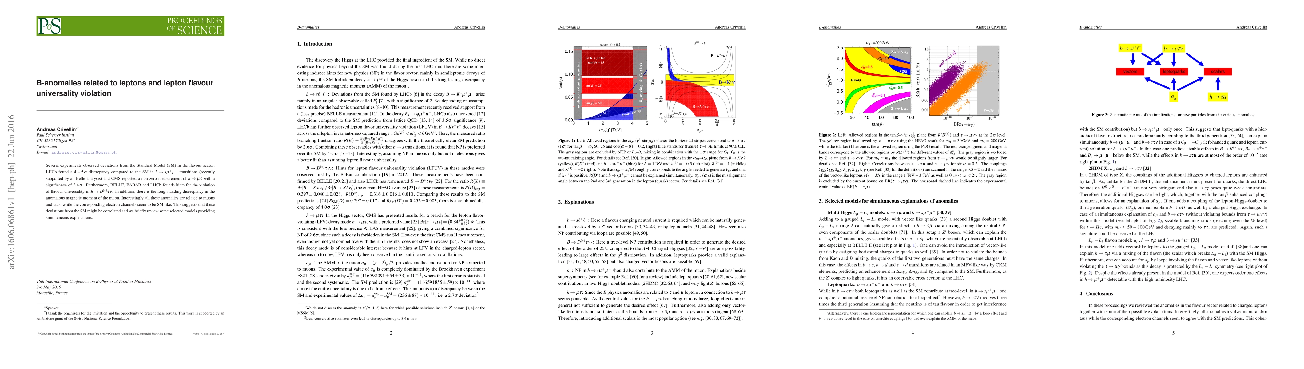 This paper discusses observed deviations from the Standard Model in lepton flavour universality, particularly in $b\to s\mu^+\mu^-$ transitions and $h\to\mu\tau$ processes, suggesting correlations between anomalies involving muons and taus. The paper also reviews potential theoretical models that could explain these anomalies.