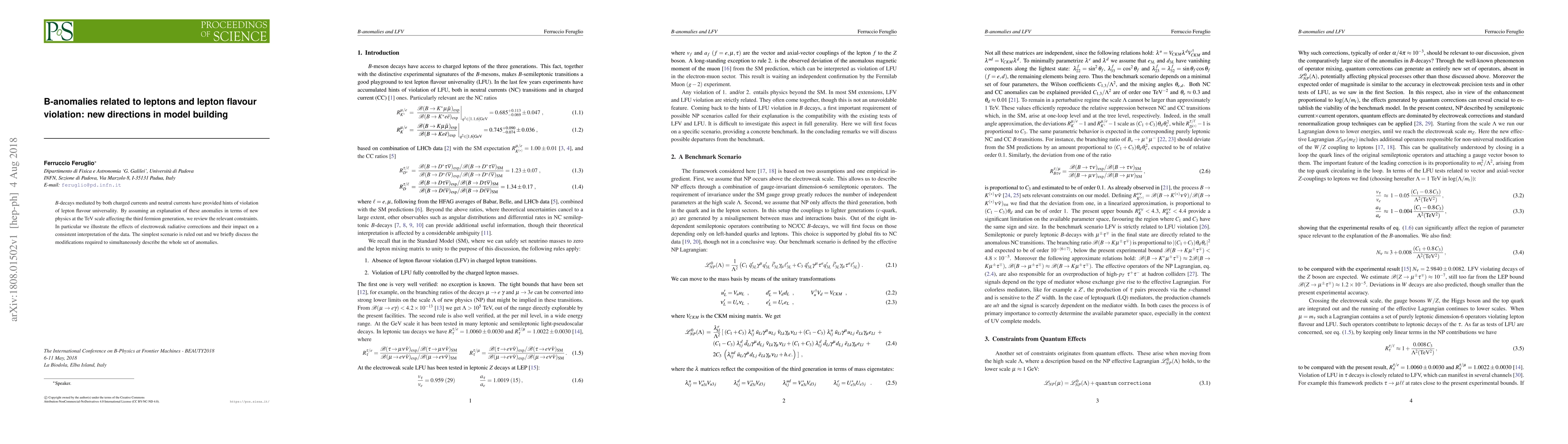 This paper reviews B-decay anomalies hinting at lepton flavor violation, focusing on new physics affecting the third fermion generation. It discusses the constraints and the impact of electroweak radiative corrections, concluding that the simplest scenario is ruled out and proposing modifications to address the observed anomalies.