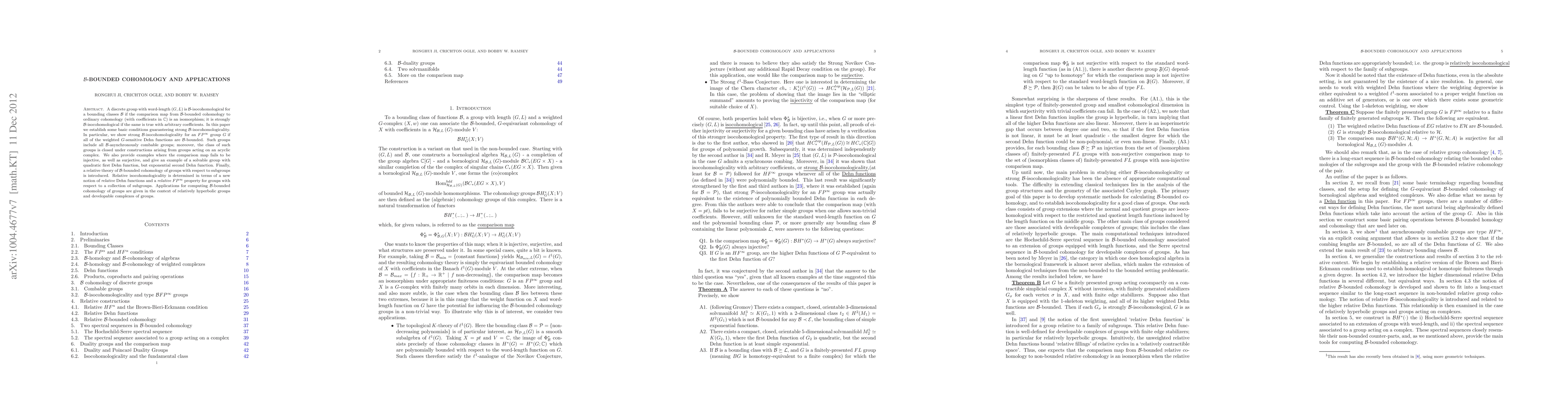 A discrete group with word-length (G,L) is B-isocohomological for a bounding classes B if the comparison map from B-bounded cohomology to ordinary cohomology (with complex coefficients) is an isomorphism; it is strongly B-isocohomological if the same is true with arbitrary coefficients. In this paper we establish some basic conditions guaranteeing strong B-isocohomologicality. In particular, we show strong B-isocohomologicality for an $FP^{\infty}$ group G if all of the weighted G-sensitive Dehn functions are B-bounded. Such groups include all B-asynchronously combable groups; moreover, the class of such groups is closed under constructions arising from groups acting on an acyclic complex. We also provide examples where the comparison map fails to be injective, as well as surjective, and give an example of a solvable group with quadratic first Dehn function, but exponential second Dehn function. Finally, a relative theory of B-bounded cohomology of groups with respect to subgroups is introduced. Relative isocohomologicality is determined in terms of a new notion of relative Dehn functions and a relative $FP^\infty$ property for groups with respect to a collection of subgroups. Applications for computing B-bounded cohomology of groups are given in the context of relatively hyperbolic groups and developable complexes of groups.