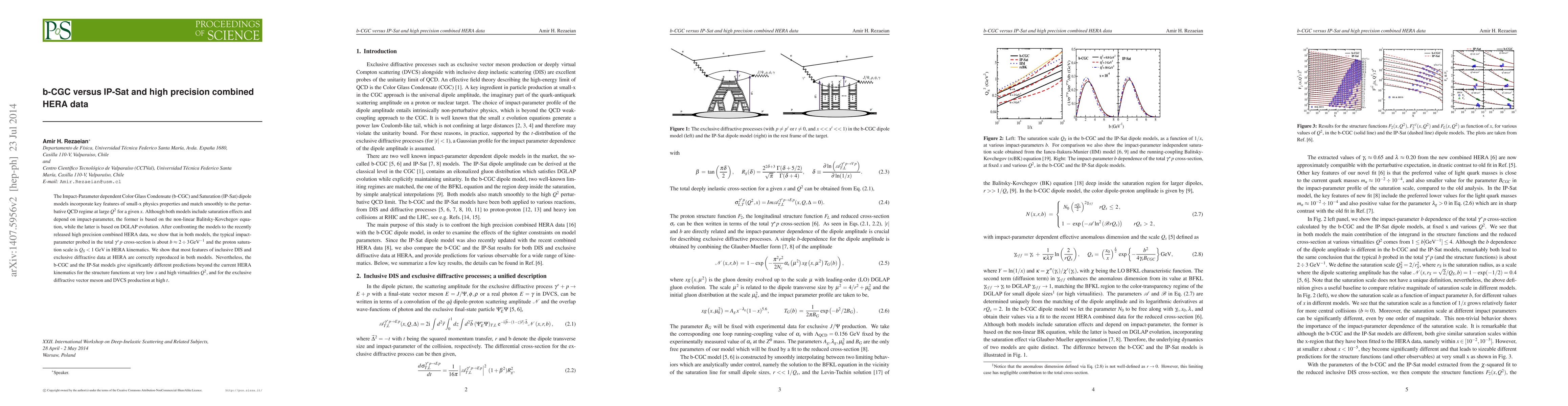 Two models, b-CGC and IP-Sat, accurately describe HERA data for inclusive DIS and exclusive diffractive phenomena but diverge in predictions at low x and high virtualities.
