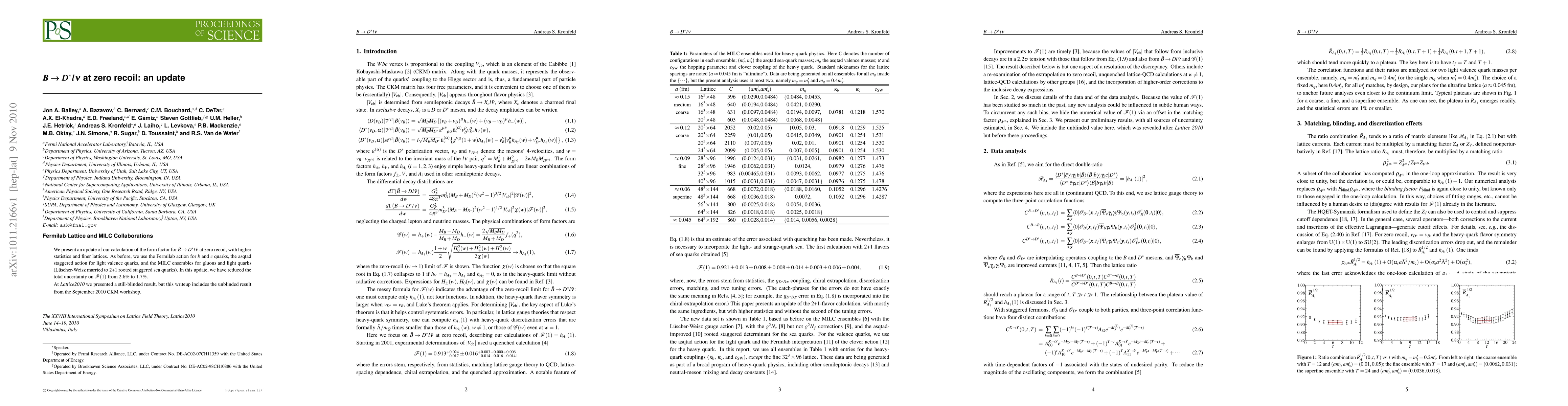 This paper updates the calculation of the B -> D* l nu form factor at zero recoil using improved lattice techniques, achieving a reduction in the uncertainty on F(1) from 2.6% to 1.7%. The study employs the Fermilab action for heavy quarks and the asqtad staggered action for light quarks, with results now unblinded from the September 2010 CKM workshop.