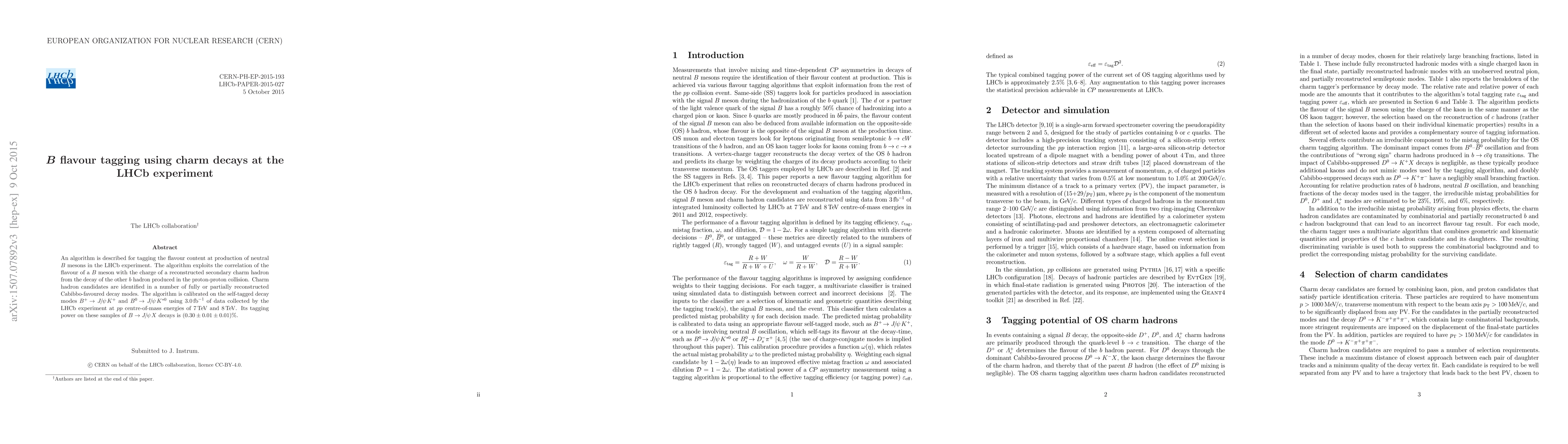 An algorithm is described for tagging the flavour content at production of neutral $B$ mesons in the LHCb experiment. The algorithm exploits the correlation of the flavour of a $B$ meson with the charge of a reconstructed secondary charm hadron from the decay of the other $b$ hadron produced in the proton-proton collision. Charm hadron candidates are identified in a number of fully or partially reconstructed Cabibbo-favoured decay modes. The algorithm is calibrated on the self-tagged decay modes $B^+ \to J/\psi \, K^+$ and $B^0 \to J/\psi \, K^{*0}$ using $3.0\mathrm{\,fb}^{-1}$ of data collected by the LHCb experiment at $pp$ centre-of-mass energies of $7\mathrm{\,TeV}$ and $8\mathrm{\,TeV}$. Its tagging power on these samples of $B \to J/\psi \, X$ decays is $(0.30 \pm 0.01 \pm 0.01) \%$.